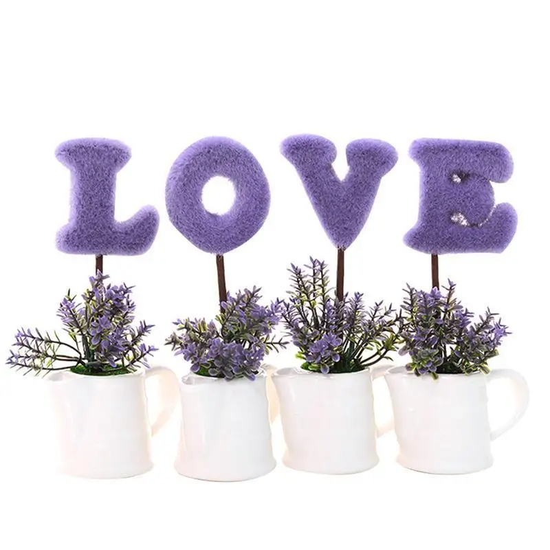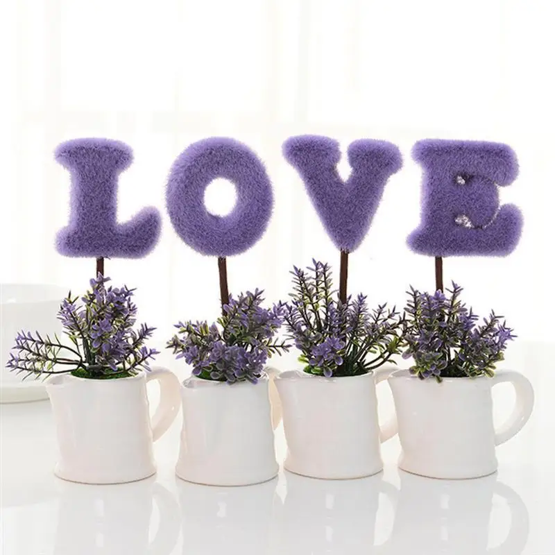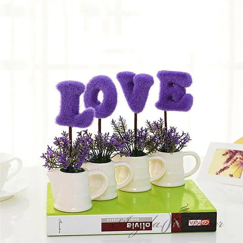 1 * LOVE Mini Artificial Plants Set Small Potted Plants Simulation Flower Pots Home Table Window Decor Wedding Supplies