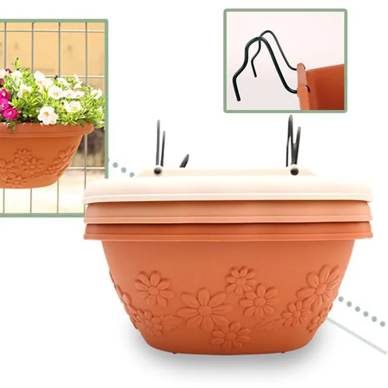 BESTOYARD Wall-mounted Resin Planter Plastic Hanging Planter Gardern Plants Pot with Hook (Brown Black)
