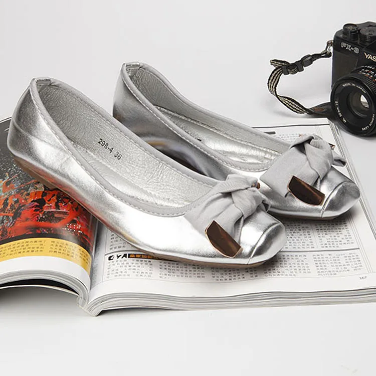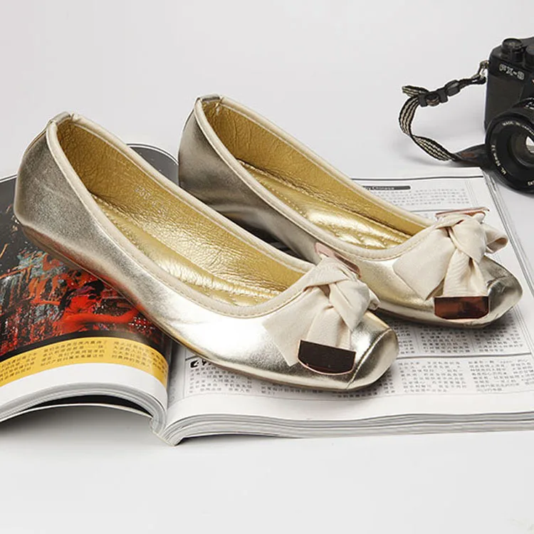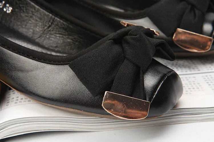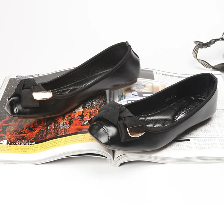 2016 women’s bow flat shoes square shallow mouth toe flat heel boat shoes ladle shoes single shoes