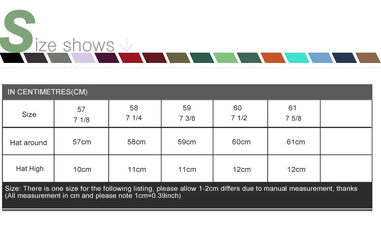 Suitable for the head circumference:57cm 58cm 59cm 60cm 61cm