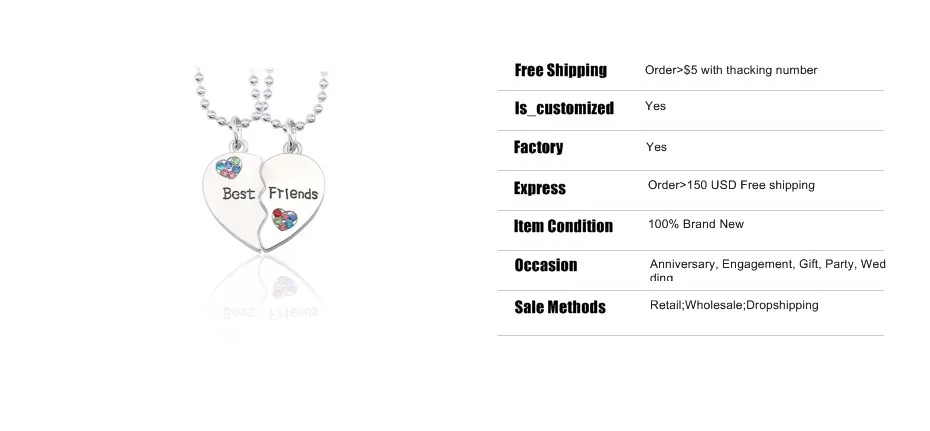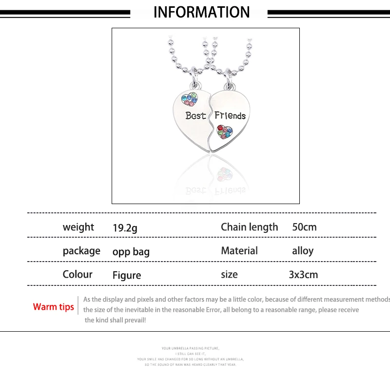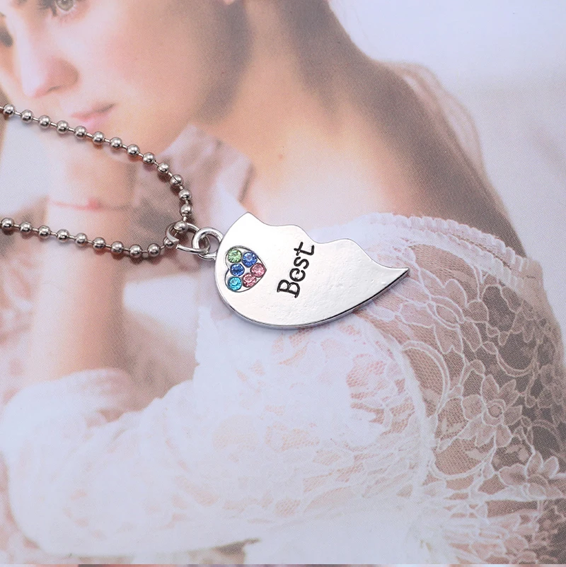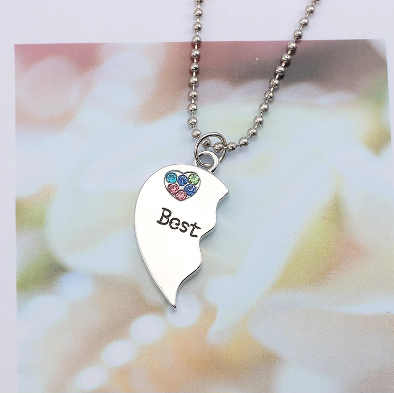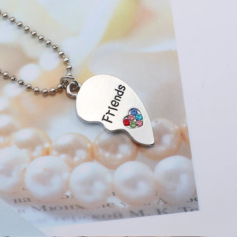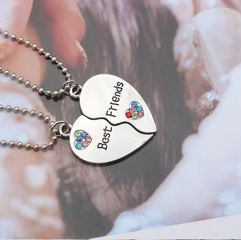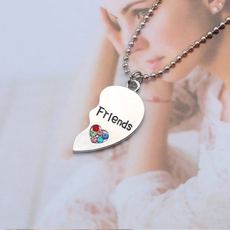 BFF Trendy Best Friend Forever Necklace Jewelry For Women Broken Heart Pendant Colorful Rhinestone Hearts Necklaces&Pendants