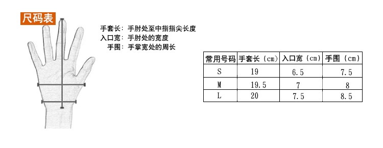S=19 cm Length, Bottom=6.5cm, Palm Width=7.5