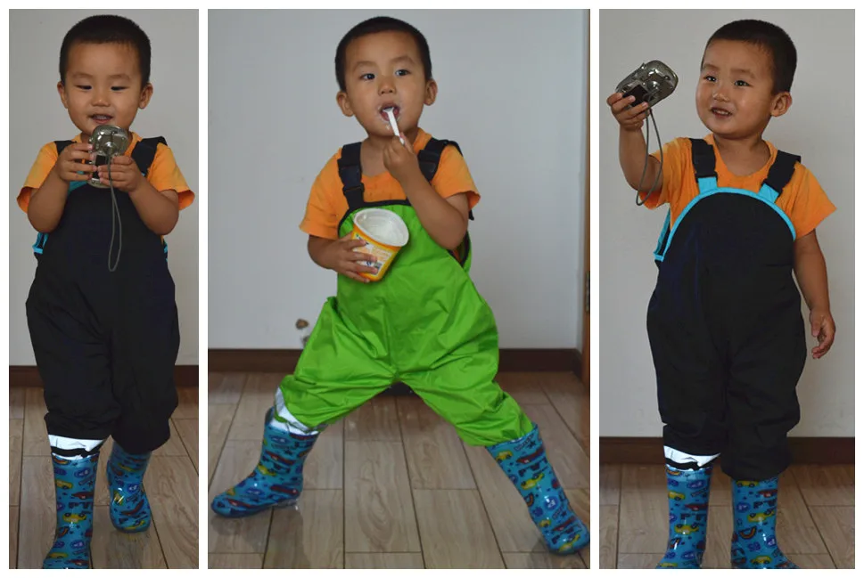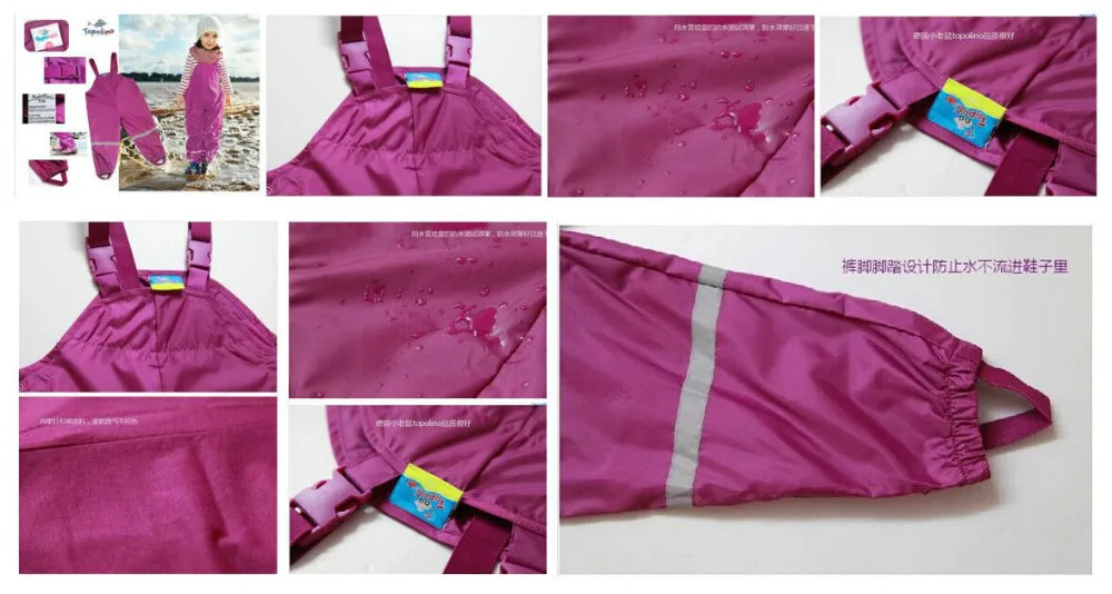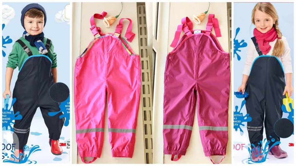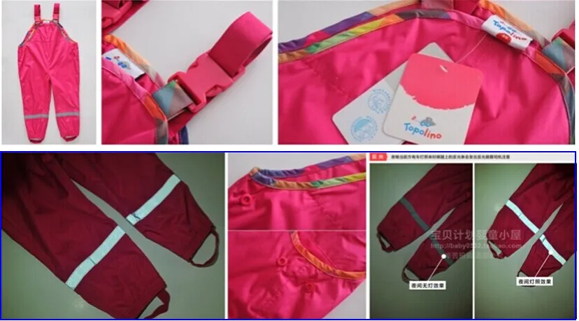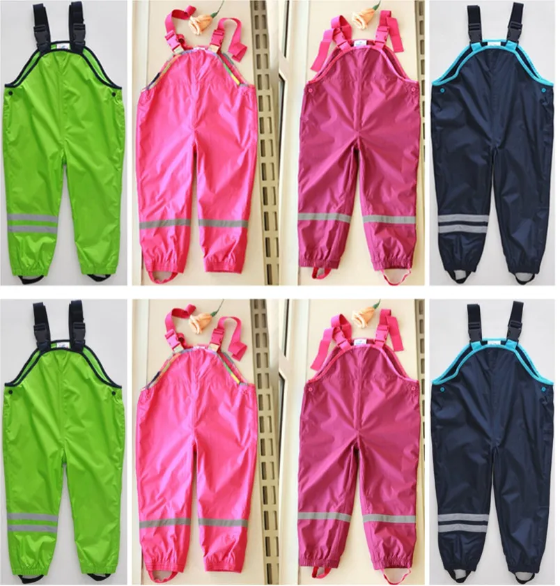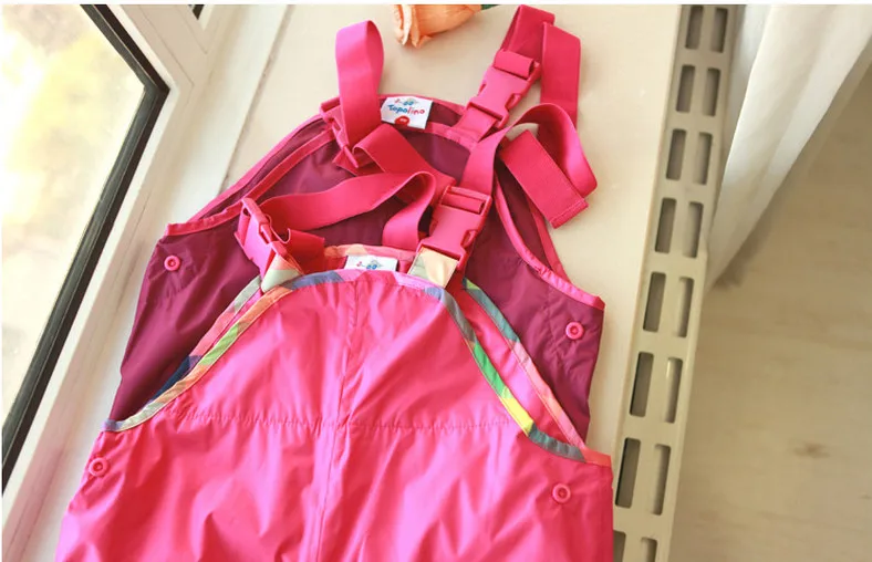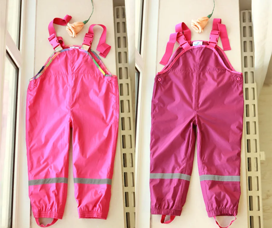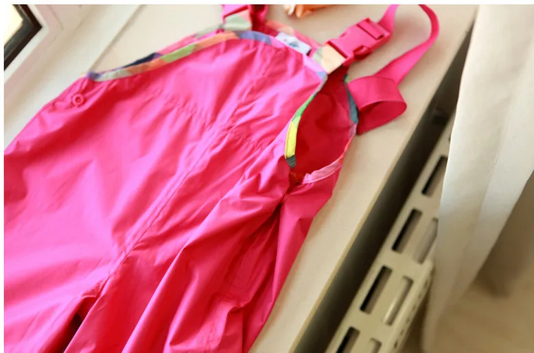 Bib pants spring and autumn female child waterproof double layer rain pants suspenders beach pants quality thin skiing pants
