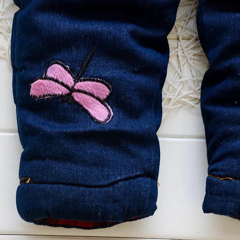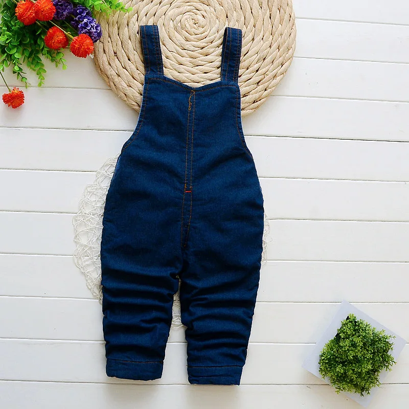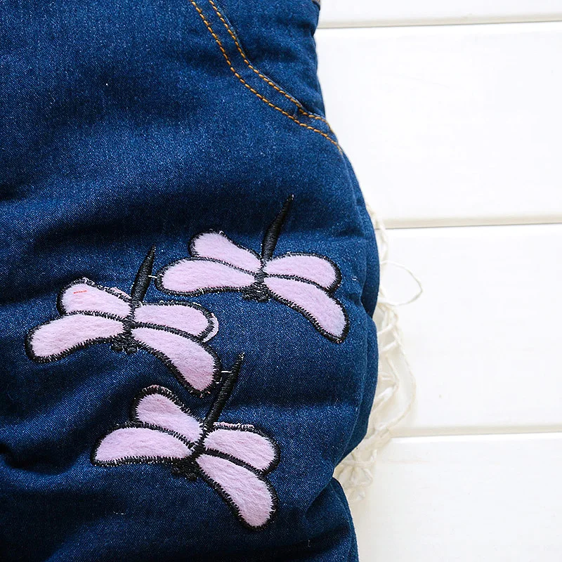 BibiCola 2018 baby girls winter warm overalls girls clothes bowknot cute denim trousers for girls junpsuit infant girls pants