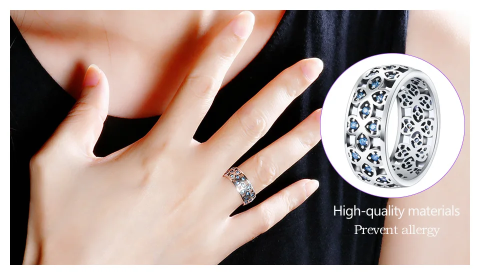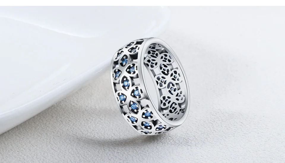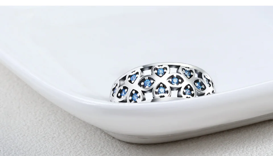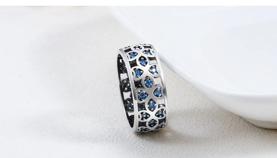 BICUX Fashion Creative Cute Romantic Clover Crystal Rings for Women Wedding Anniversary Exquisite Blue Zircon Ring Jewelry Gift