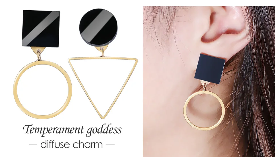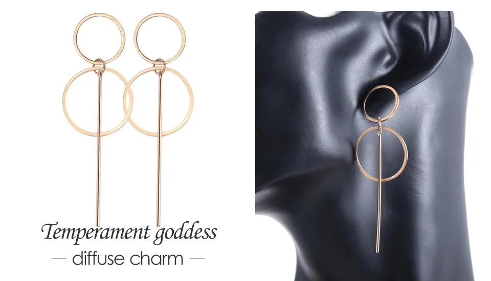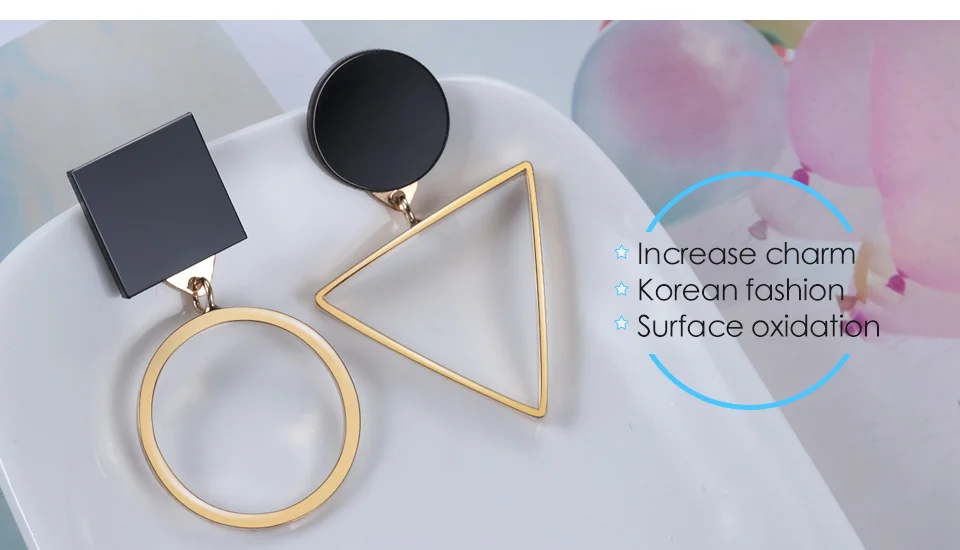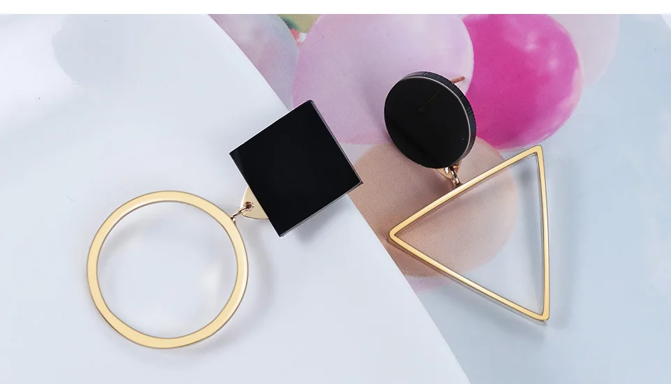 BICUX Korean Statement Geometric Gold Silver Drop Earrings for Women Decorations Fashion Long Triangle Round Asymmetric Earring