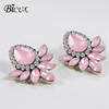 BICUX Vintage Cute Korean Geometric Multicolor Cubic Zirconia Stud Earrings for Women Water Drop Rhinestone Earring Jewelry Gift