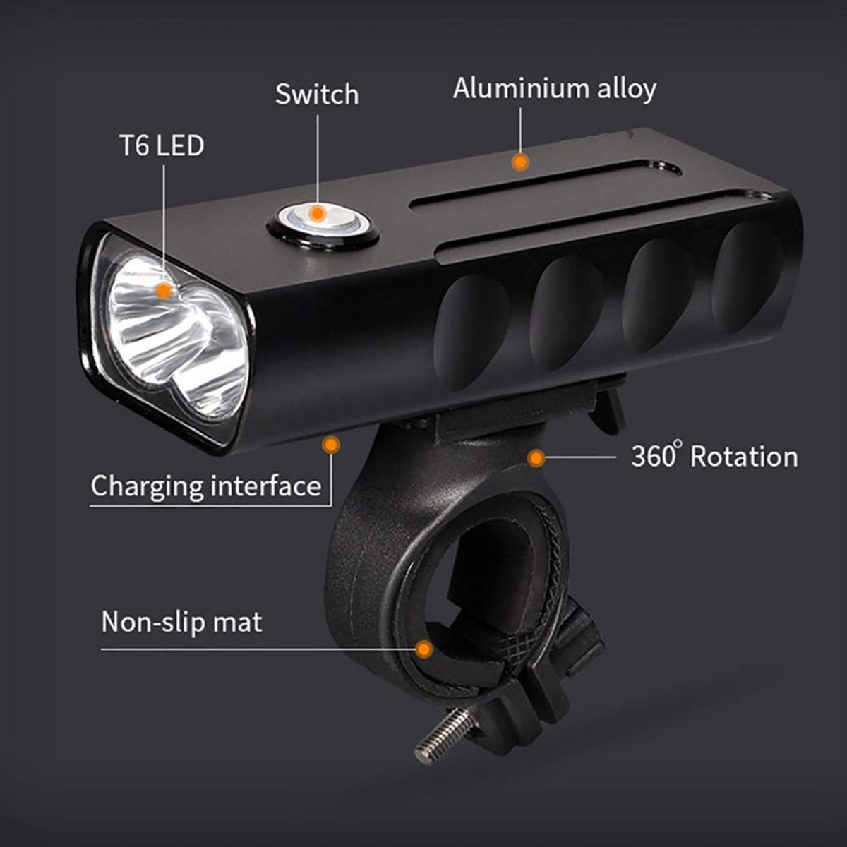 【IPX5 Waterproof and Aluminum Alloy】This bike headlight’s material is Aluminum Alloy rather than ABS plastic. Very comfortable grip feeling. You will be amazed when you first touch it. IPX5 waterproof, you can ride in small rain.