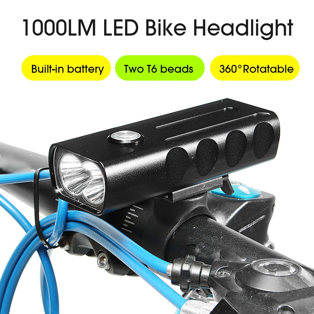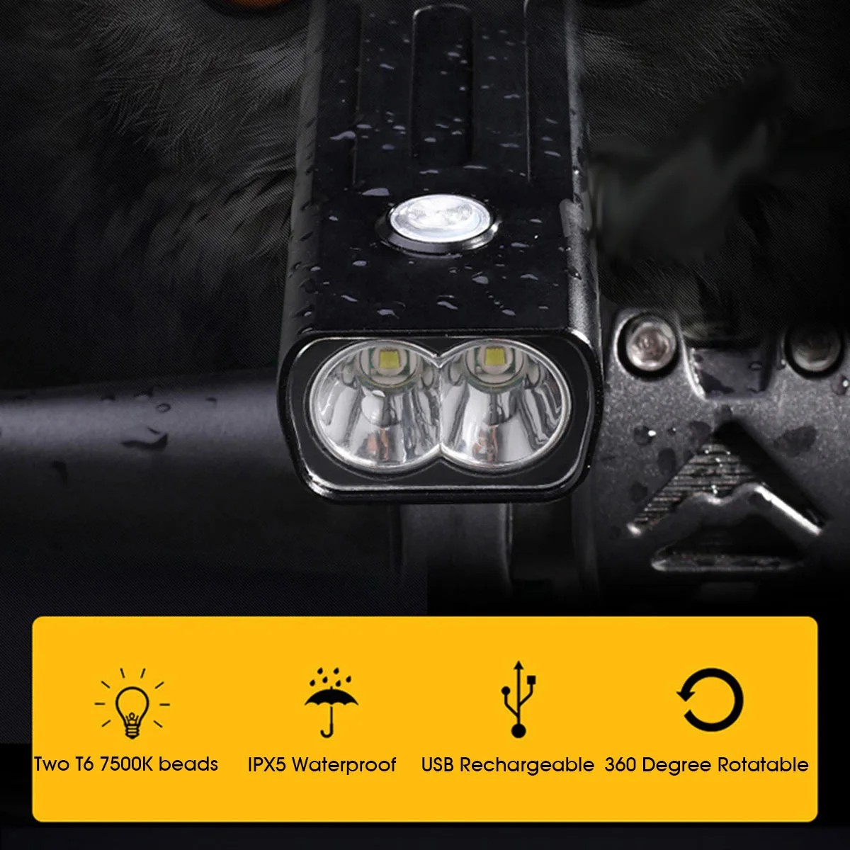 【1000 Lumens Super Bright Bike Headlight】Made up of two T6 7500K beads, 1000 Lumens Brightness, very bright bike light, 300-500 meters lighting distance. Make sure your safety in night cycling.