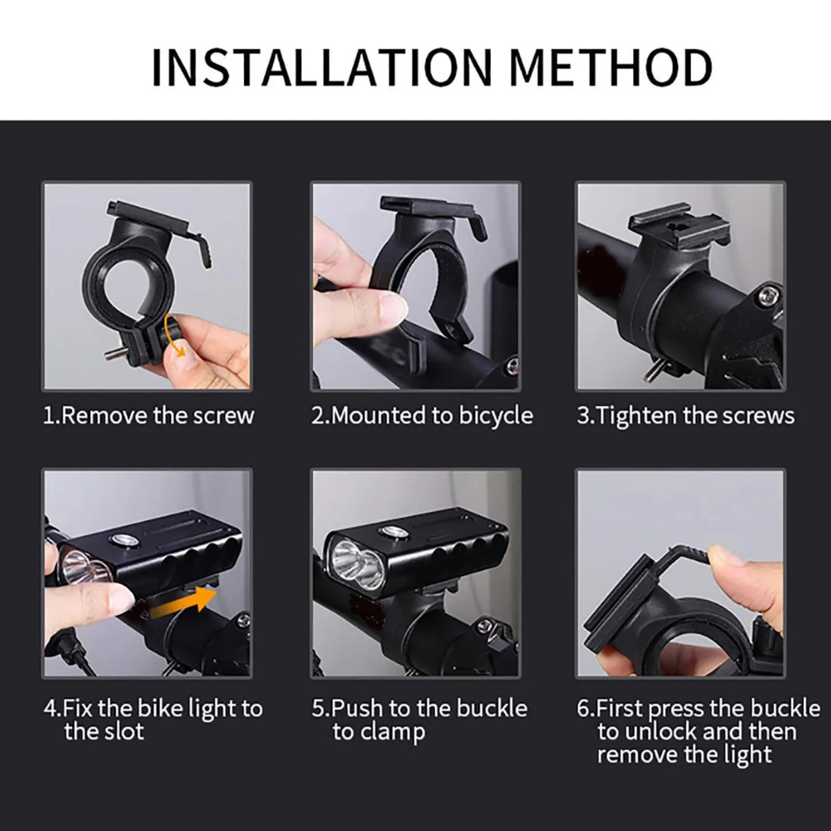 【IPX5 Waterproof and Aluminum Alloy】This bike headlight’s material is Aluminum Alloy rather than ABS plastic. Very comfortable grip feeling. You will be amazed when you first touch it. IPX5 waterproof, you can ride in small rain.