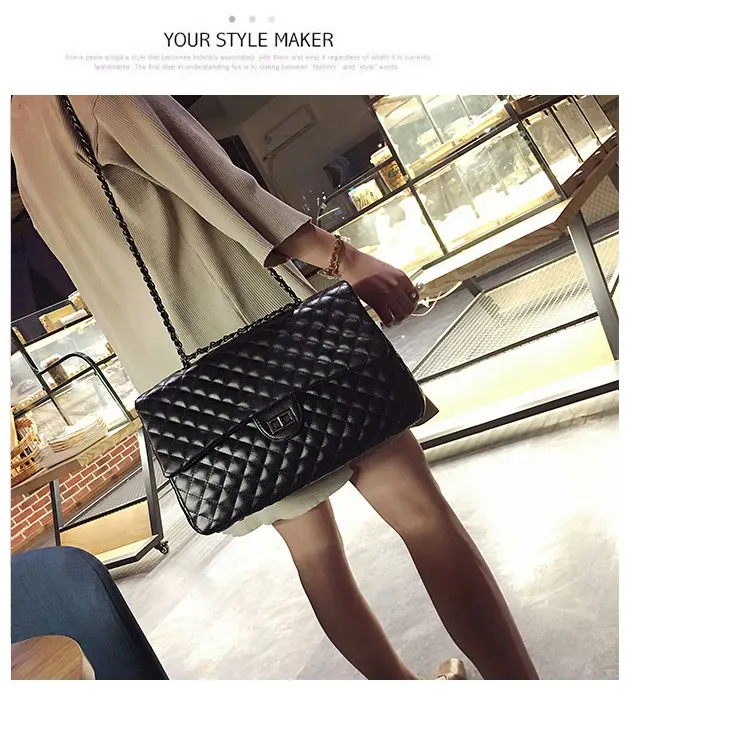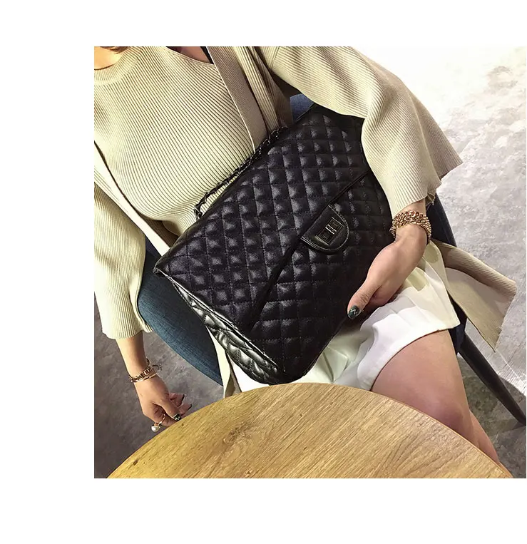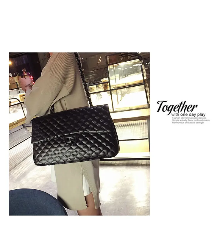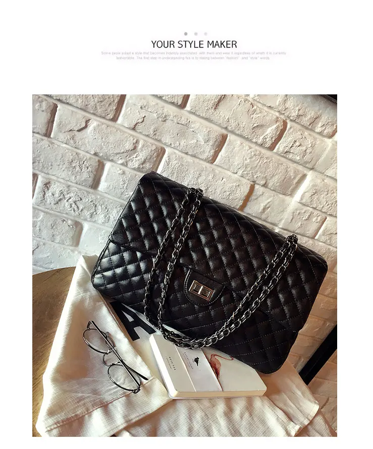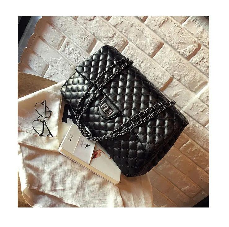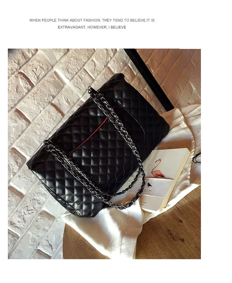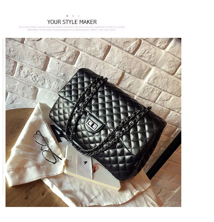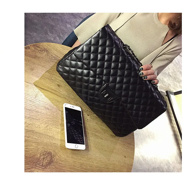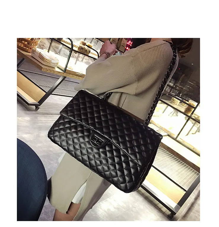 Style:Black Large Capacity Handbag Purse Black Quilted Chain Flap Bag Travel Satchel
