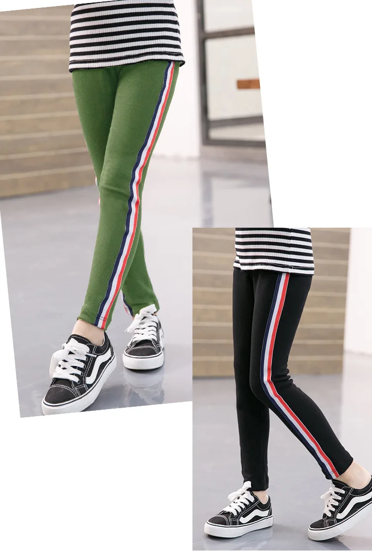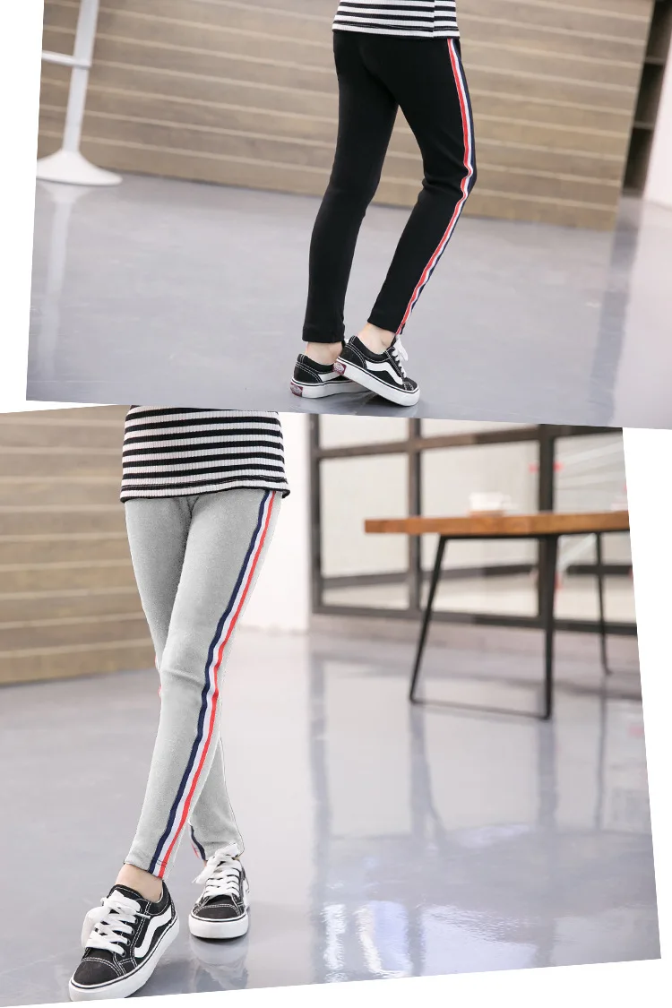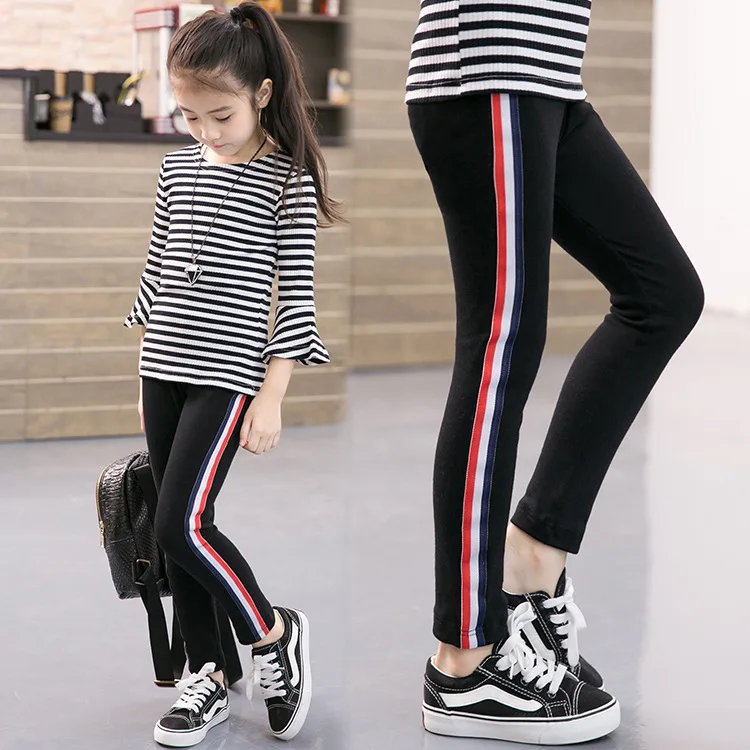 Big children’s spring and autumn 2018 new pants girls side stripes sports casual cotton leggings kids cotton pants
