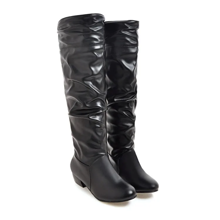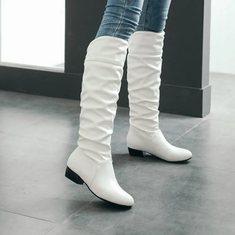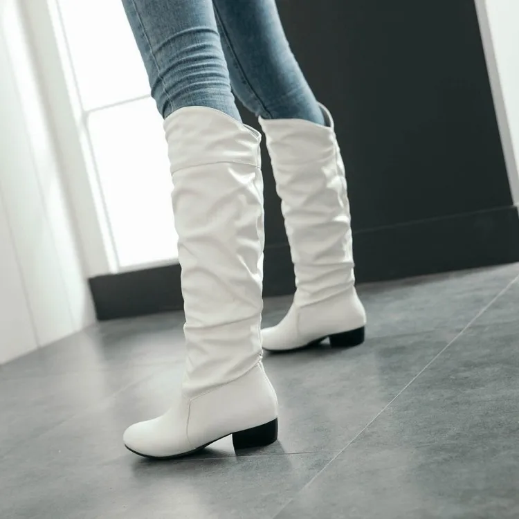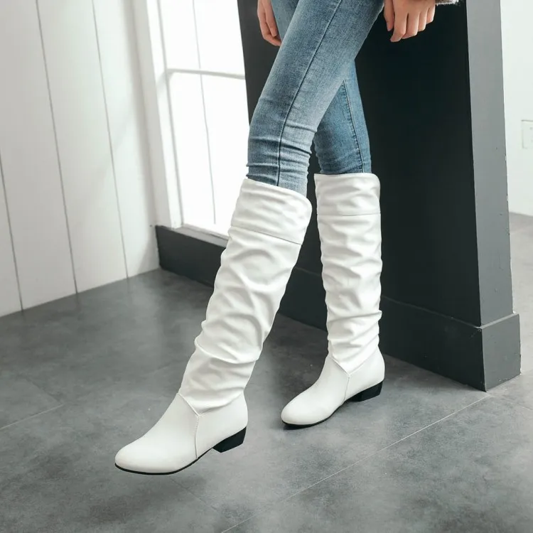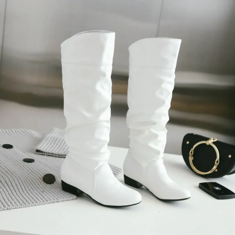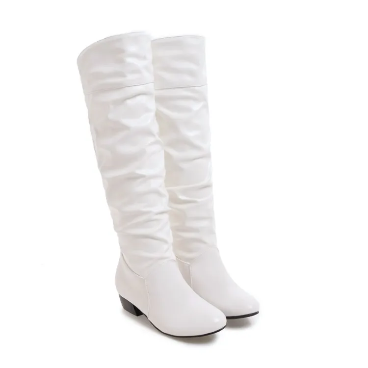 Big Size 34-43 Fashion Knee High Boots Square Heels Add Warm Winter Riding Boots Women Shoes Woman Black White