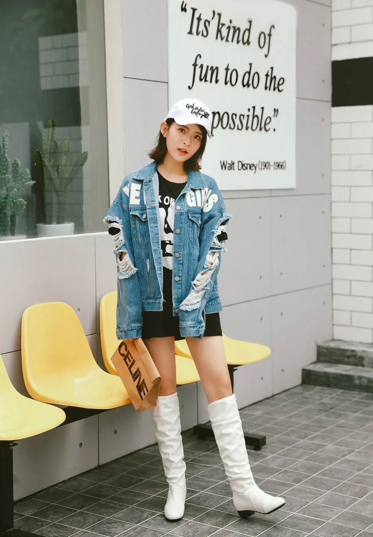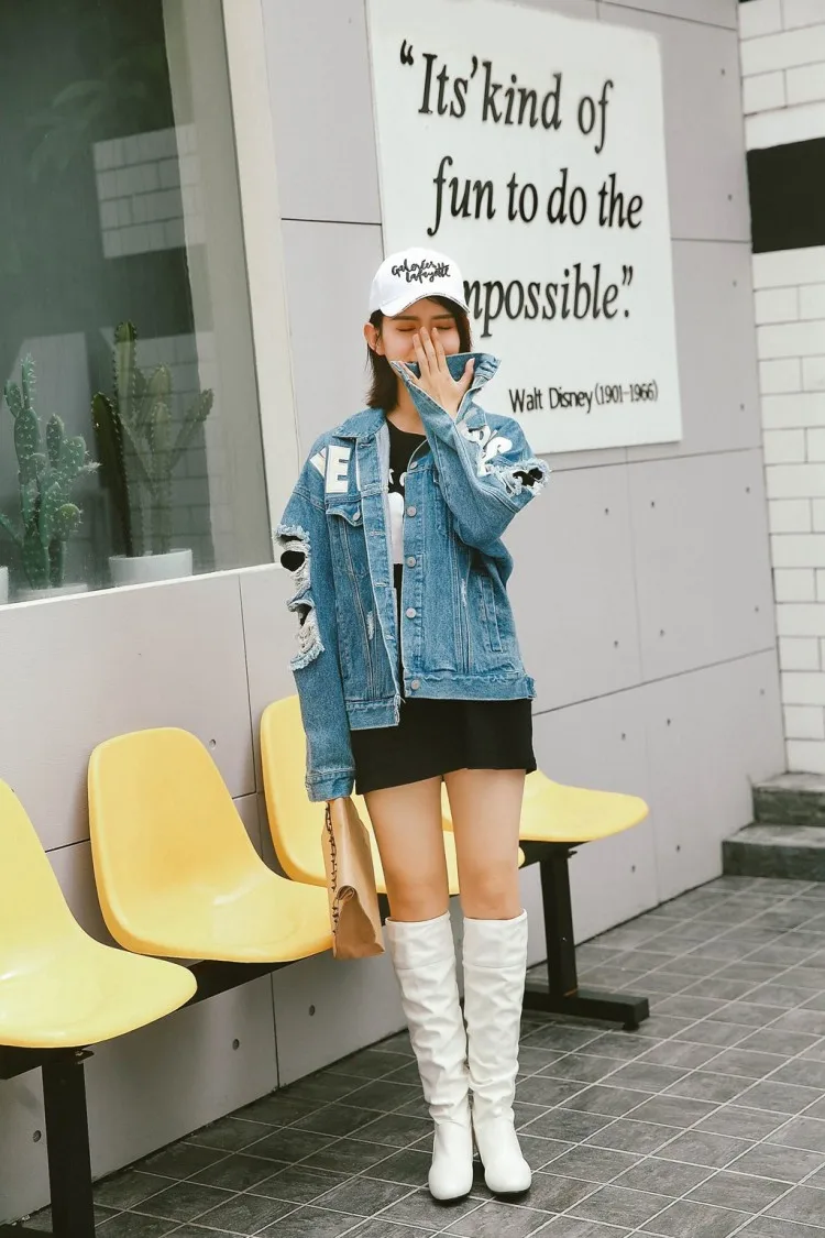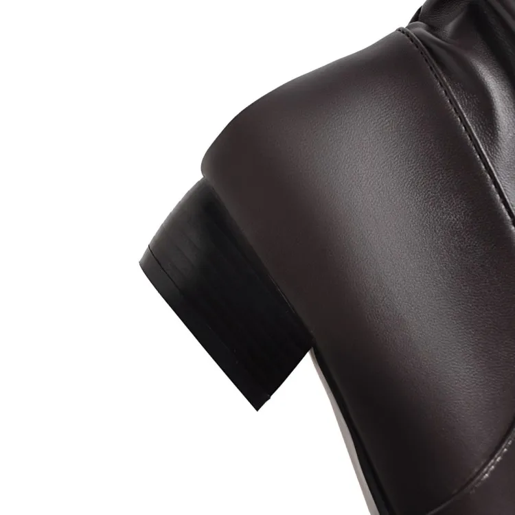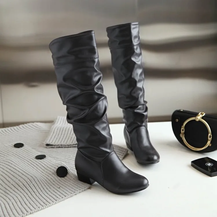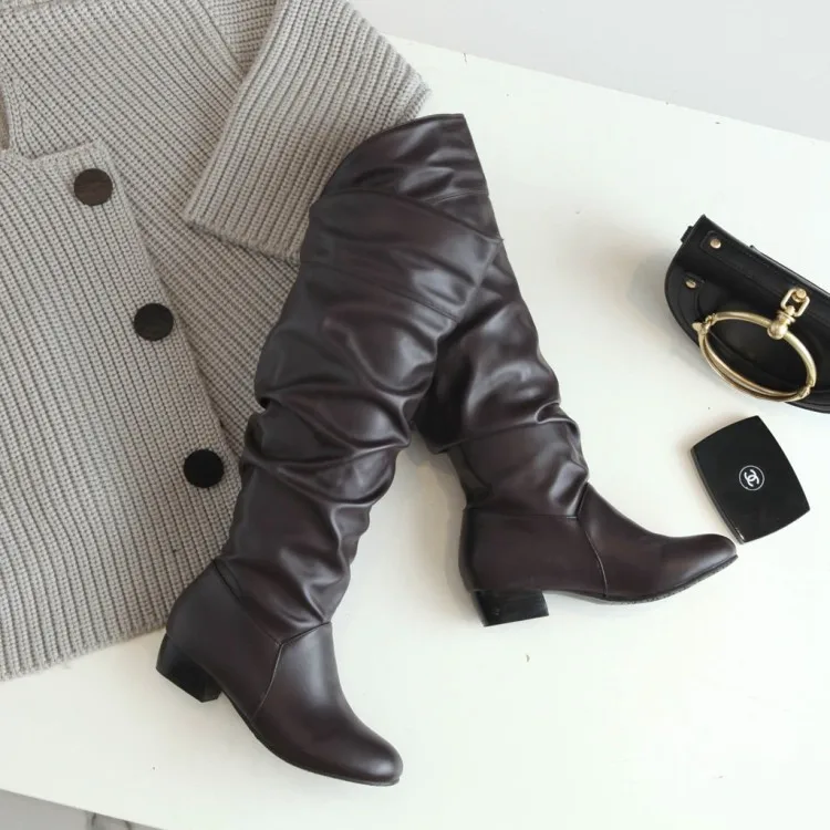 Big Size 34-43 Fashion Knee High Boots Square Heels Add Warm Winter Riding Boots Women Shoes Woman Black White