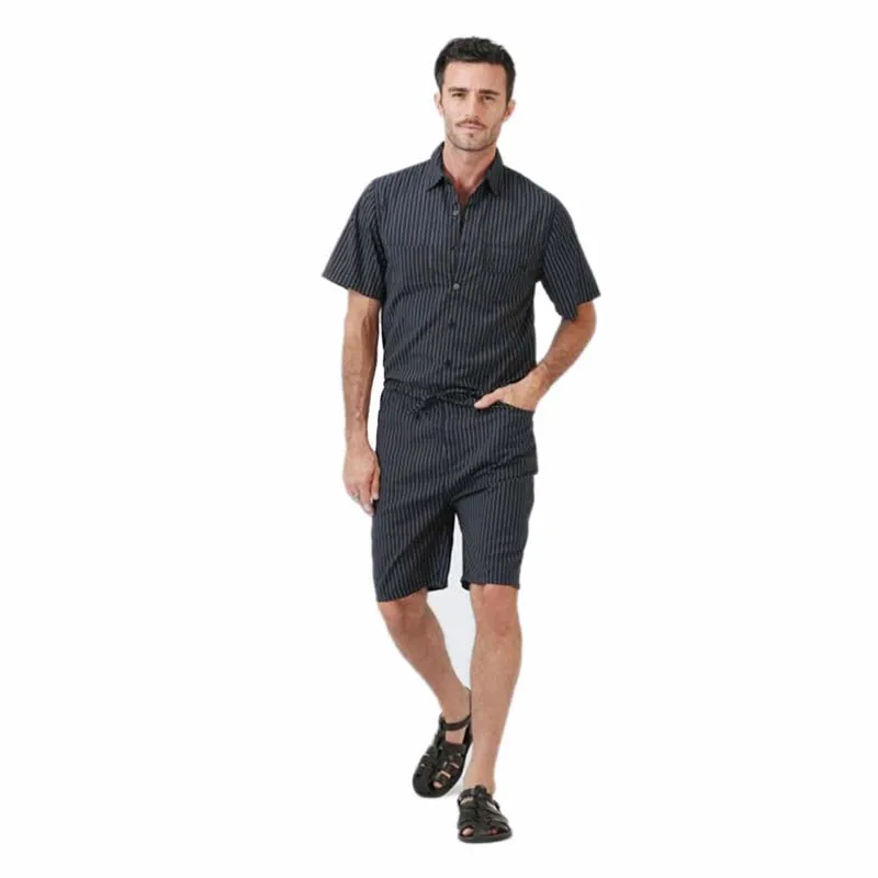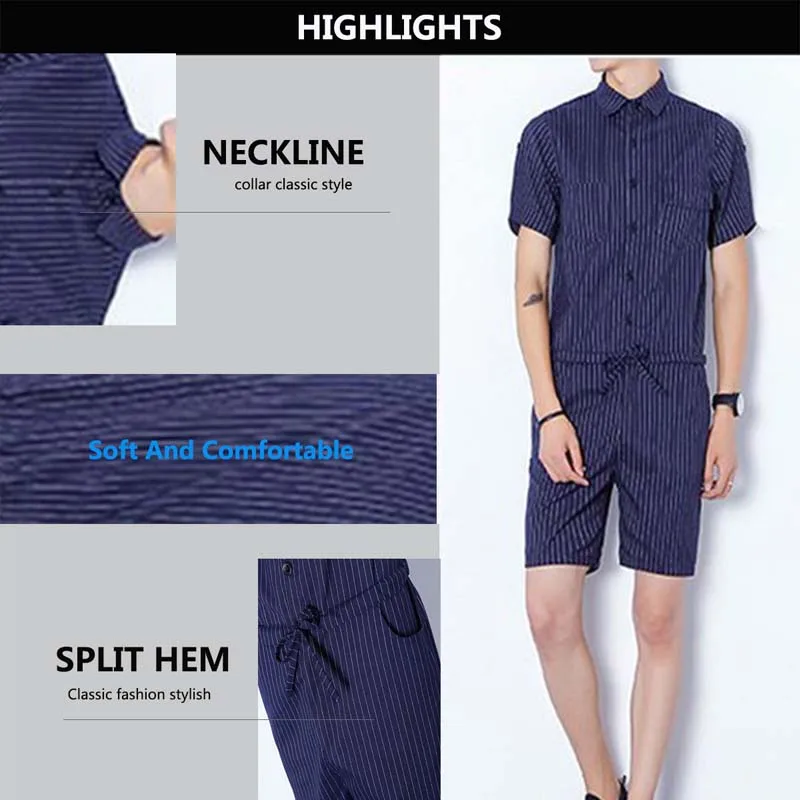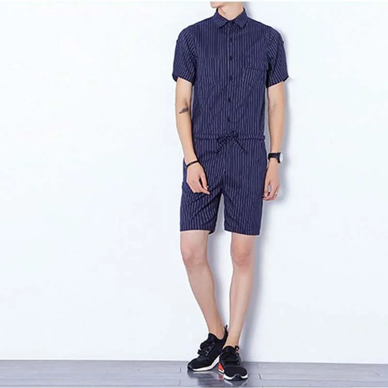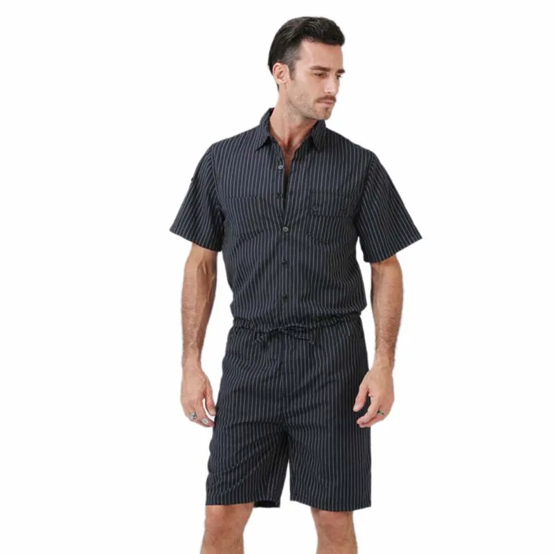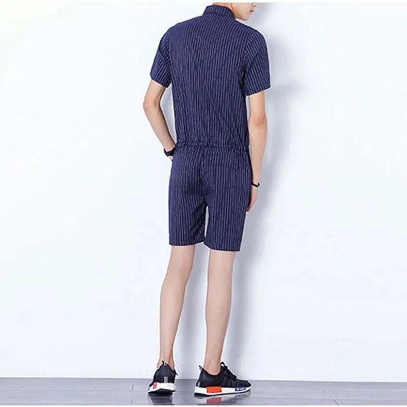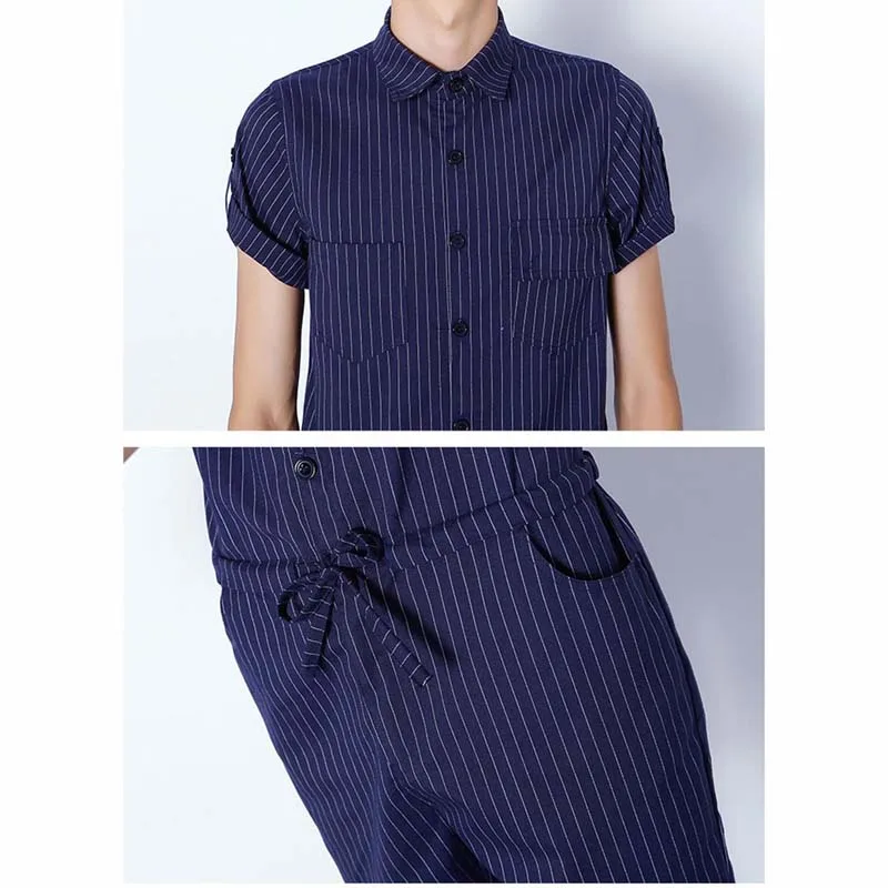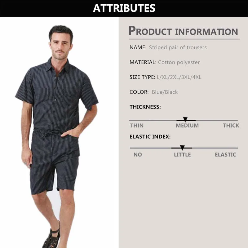 Big Yard 4XL Men Short Pants Jumpsuit 2018 Autumn New Men’s Cotton Male One Piece Overalls Romper Slim Stripe Trouser Black Blue