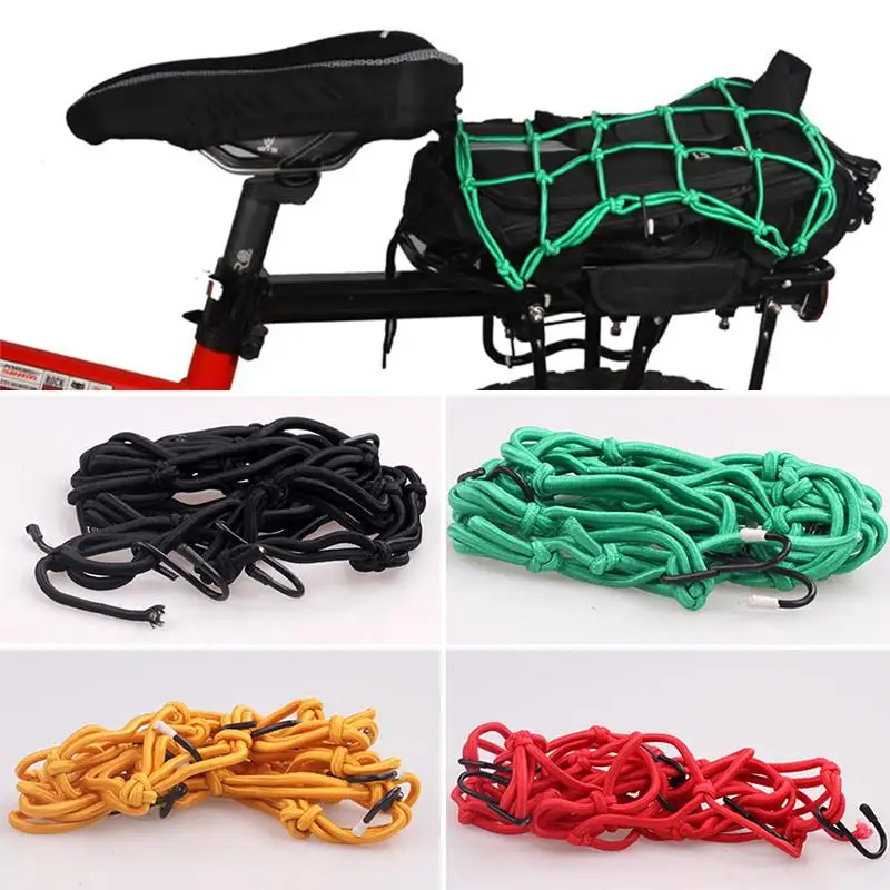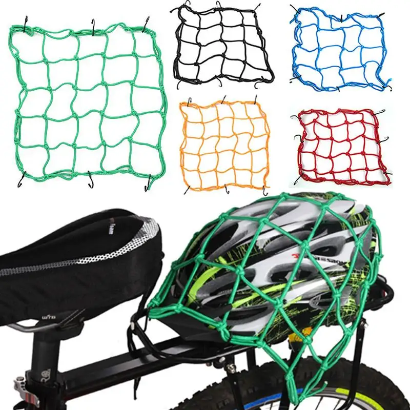 Bike Net Luggage 30X30cm Rear Rack 6 Hooks Holder Car Mesh Bungee Cord
