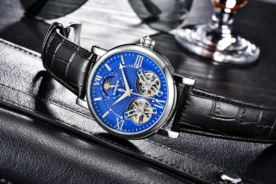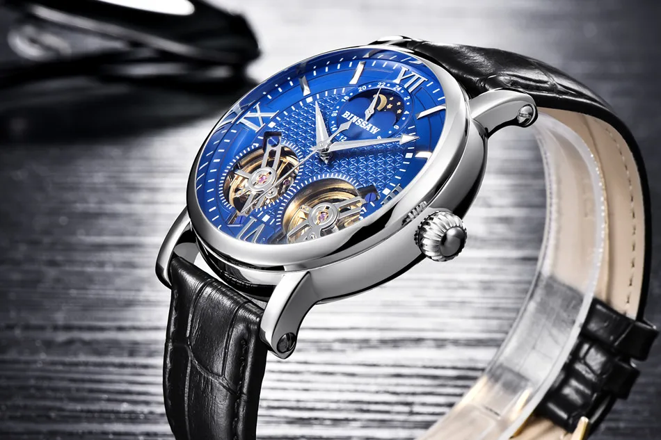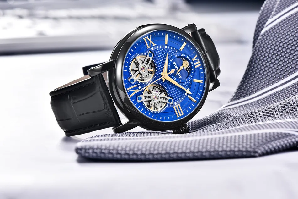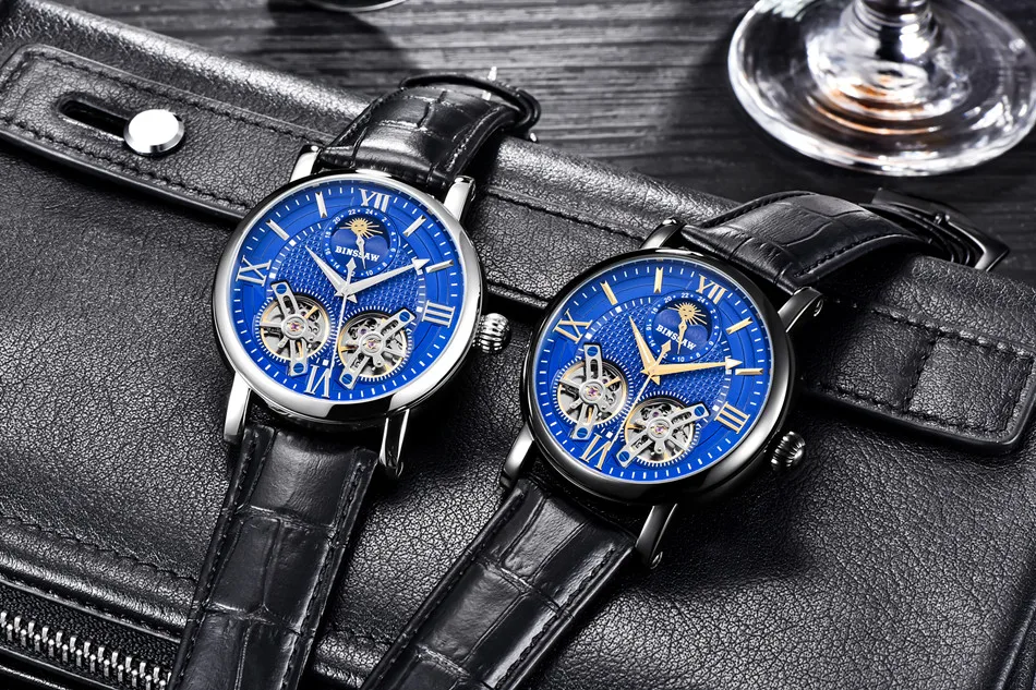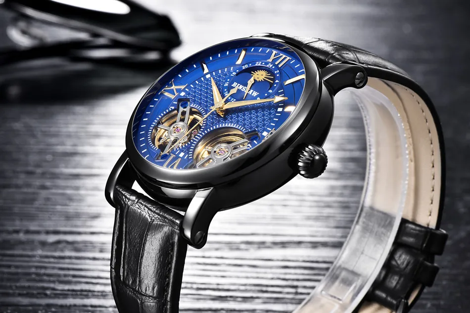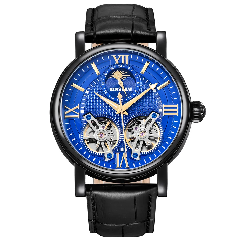 Binssaw 2018 Men New Automatic Mechanical Watch Luxury Black Brand Watch Men Sports Leather Waterproof Watches Relogio Masculino