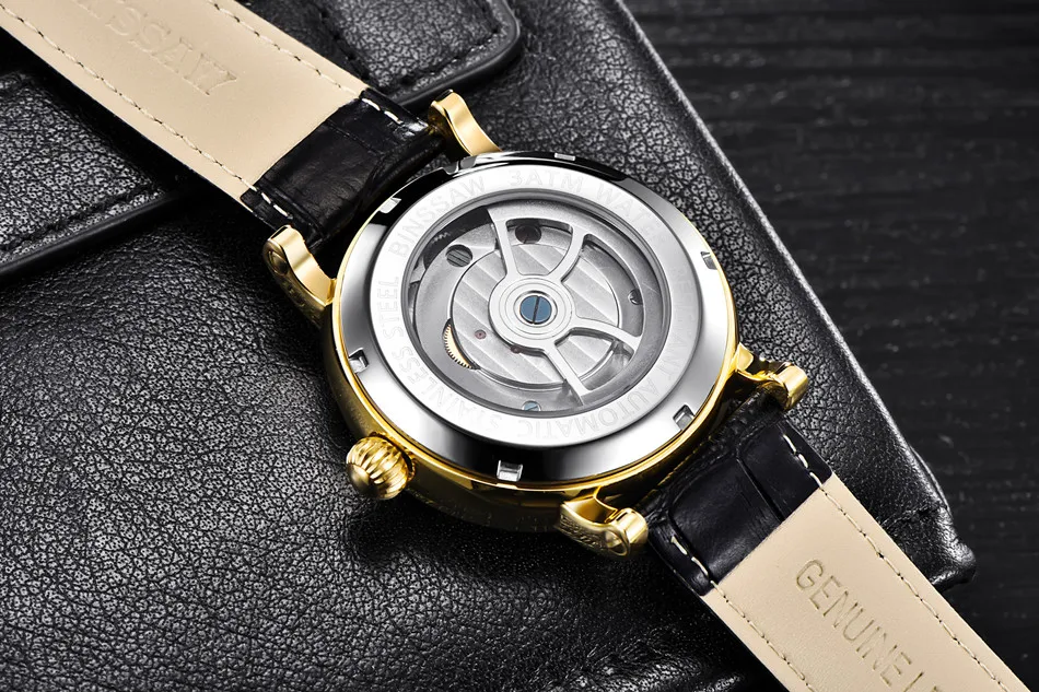 BINSSAW Men Automatic Mechanical Steel Double Tourbillon Luxury Leather Watch Fashion Business Sports Watches Relogio Masculino