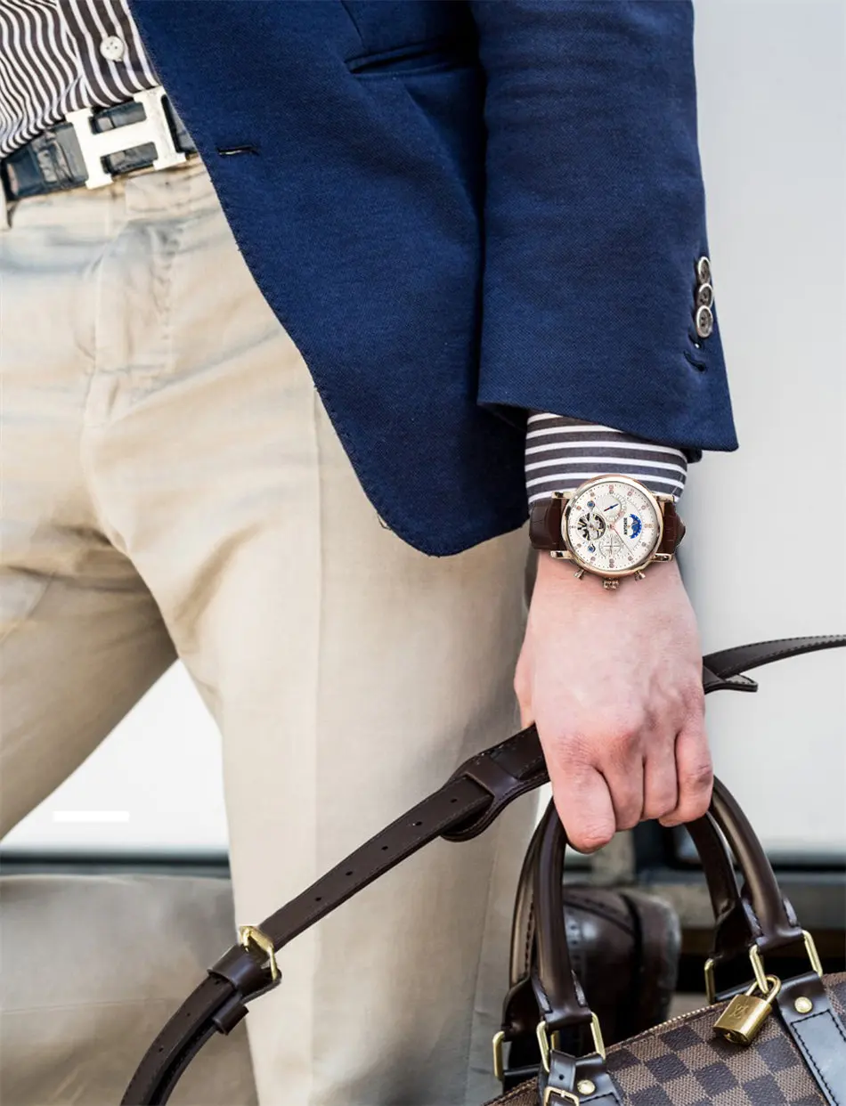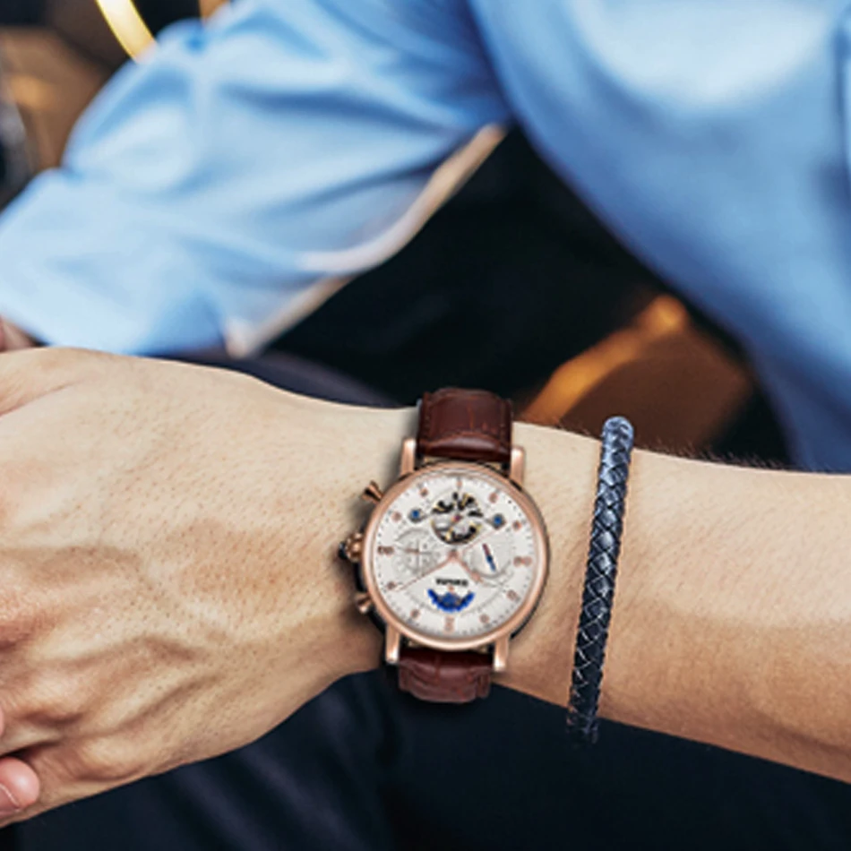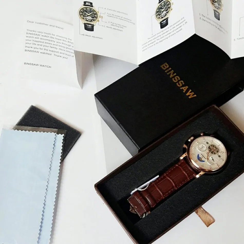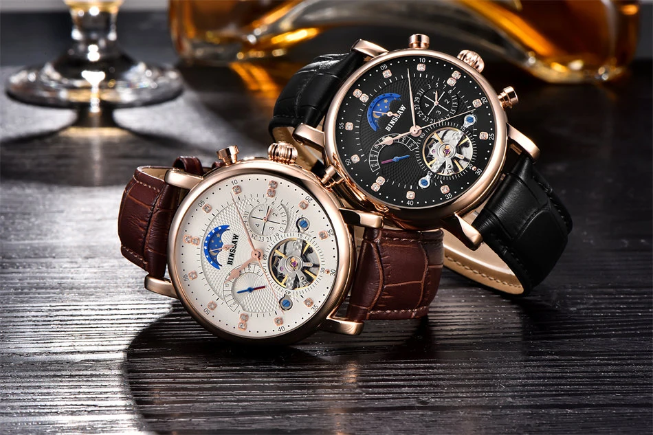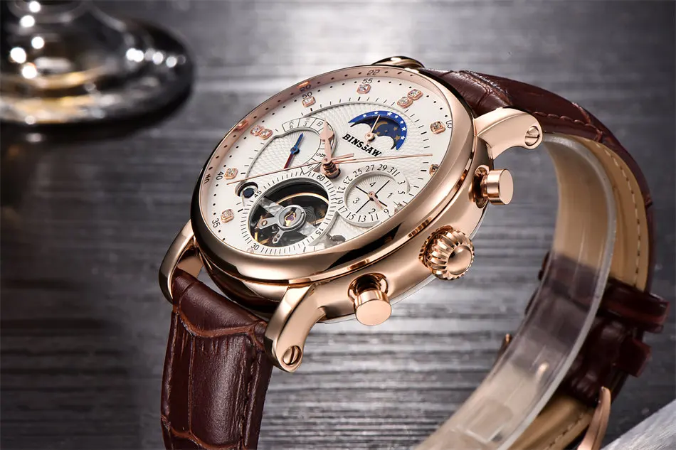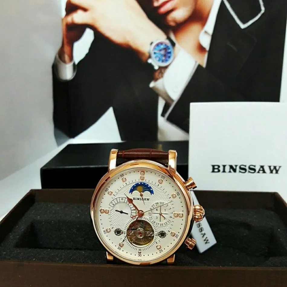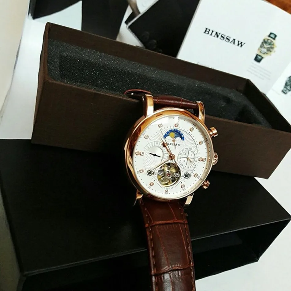 BINSSAW Men New Automatic Mechanical Watch Tourbillon Luxury Brand Men Fashion Waterproof Leather Man Watchse relogio masculino Drop Shipping