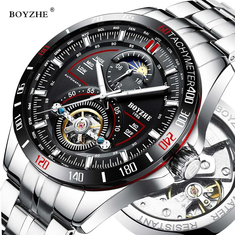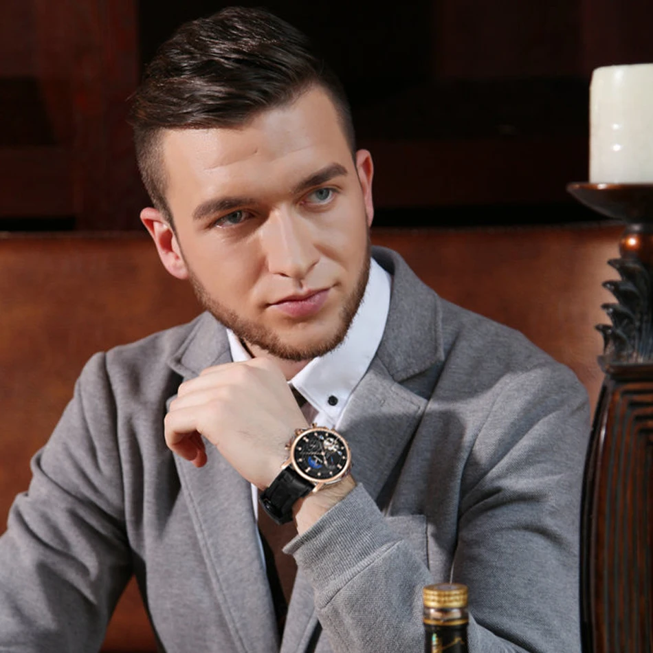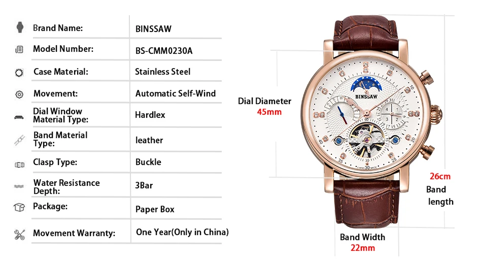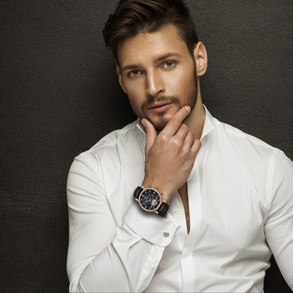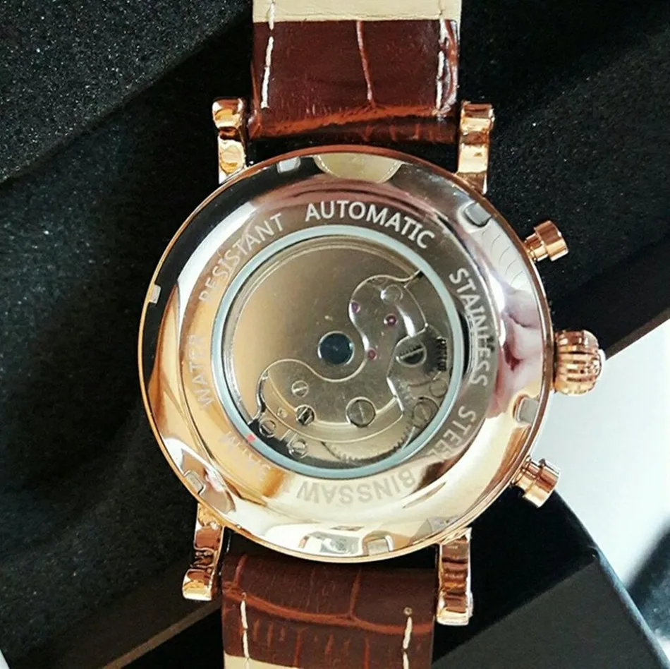 BINSSAW New Men Automatic Mechanical Watch Luxury Brand Tourbillon Mens Fashion Waterproof Leather Man Watchse relogio masculino