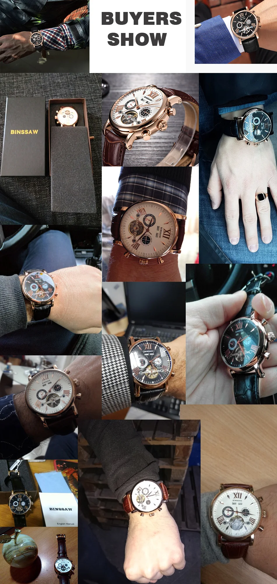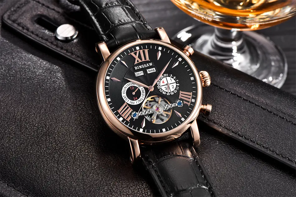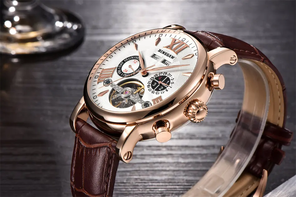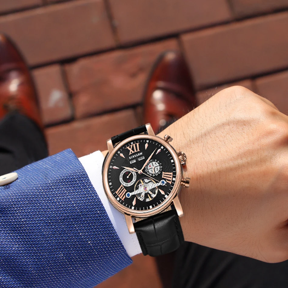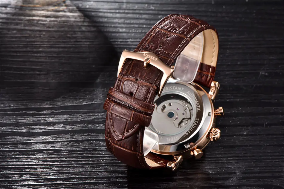 BINSSAW New Men Watch Luxury Brand Automatic Mechanical Fashion Black Sport Leather Man Calendar Week Watches relogio masculino Drop Shipping