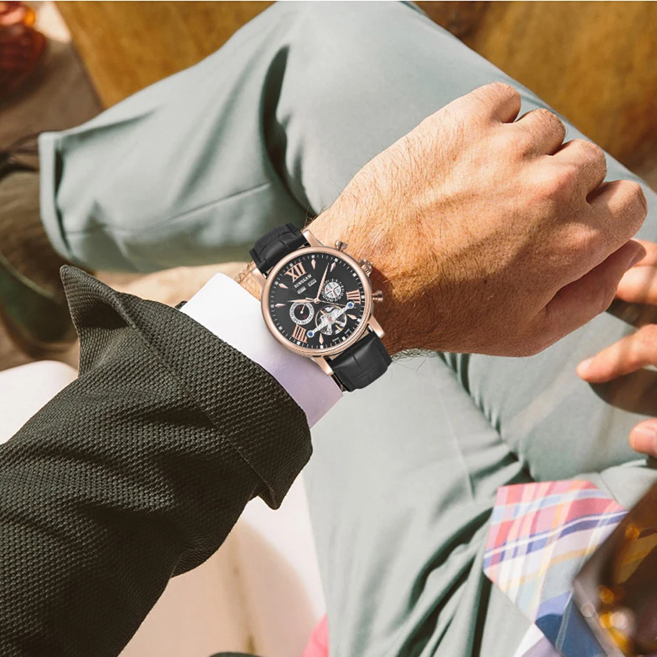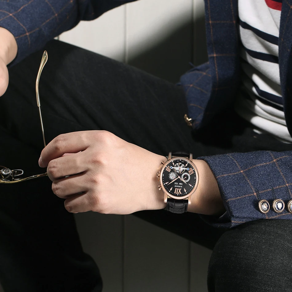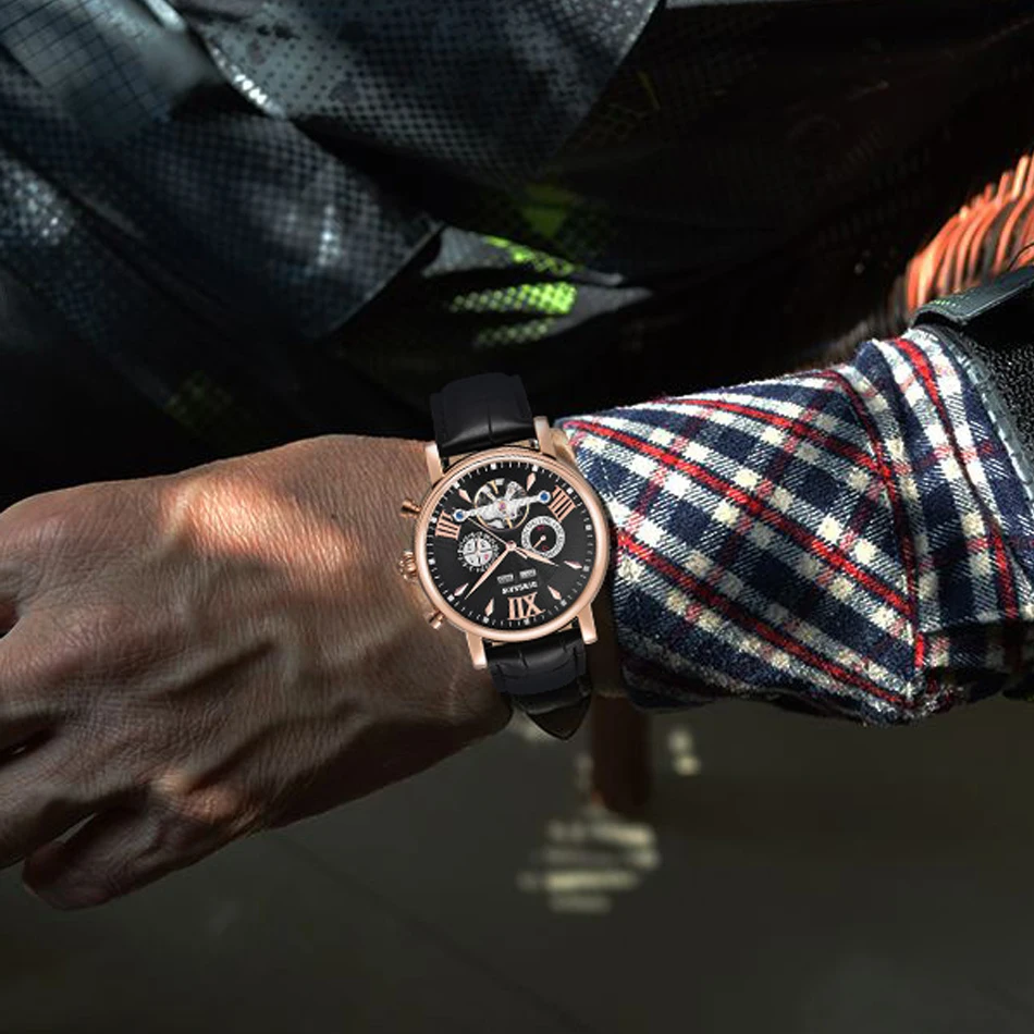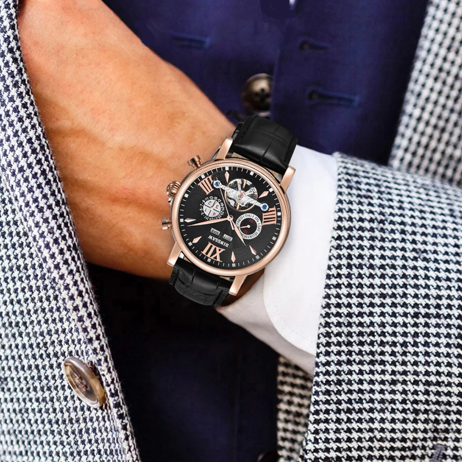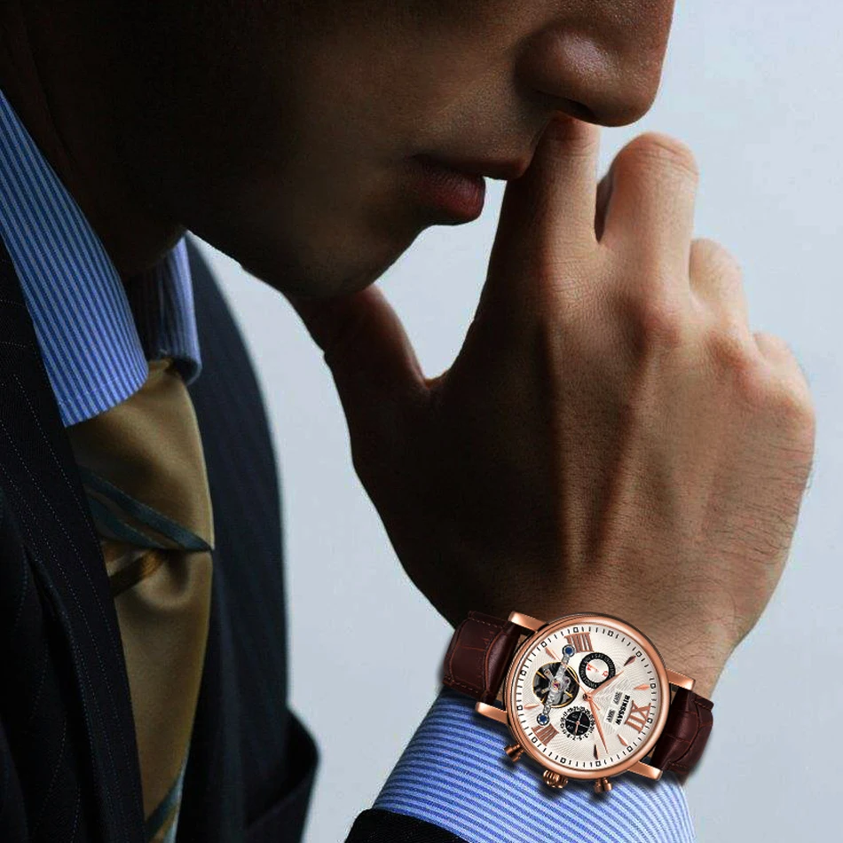 BINSSAW New Men Watch Luxury Brand Automatic Mechanical Fashion Black Sport Leather Man Calendar Week Watches relogio masculino Drop Shipping