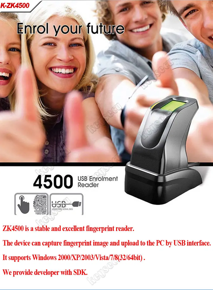 Biometric USB Fingerprint Scanner Reader ZK4500 With Free SDK For Develope Your Own System Supports Windows OS