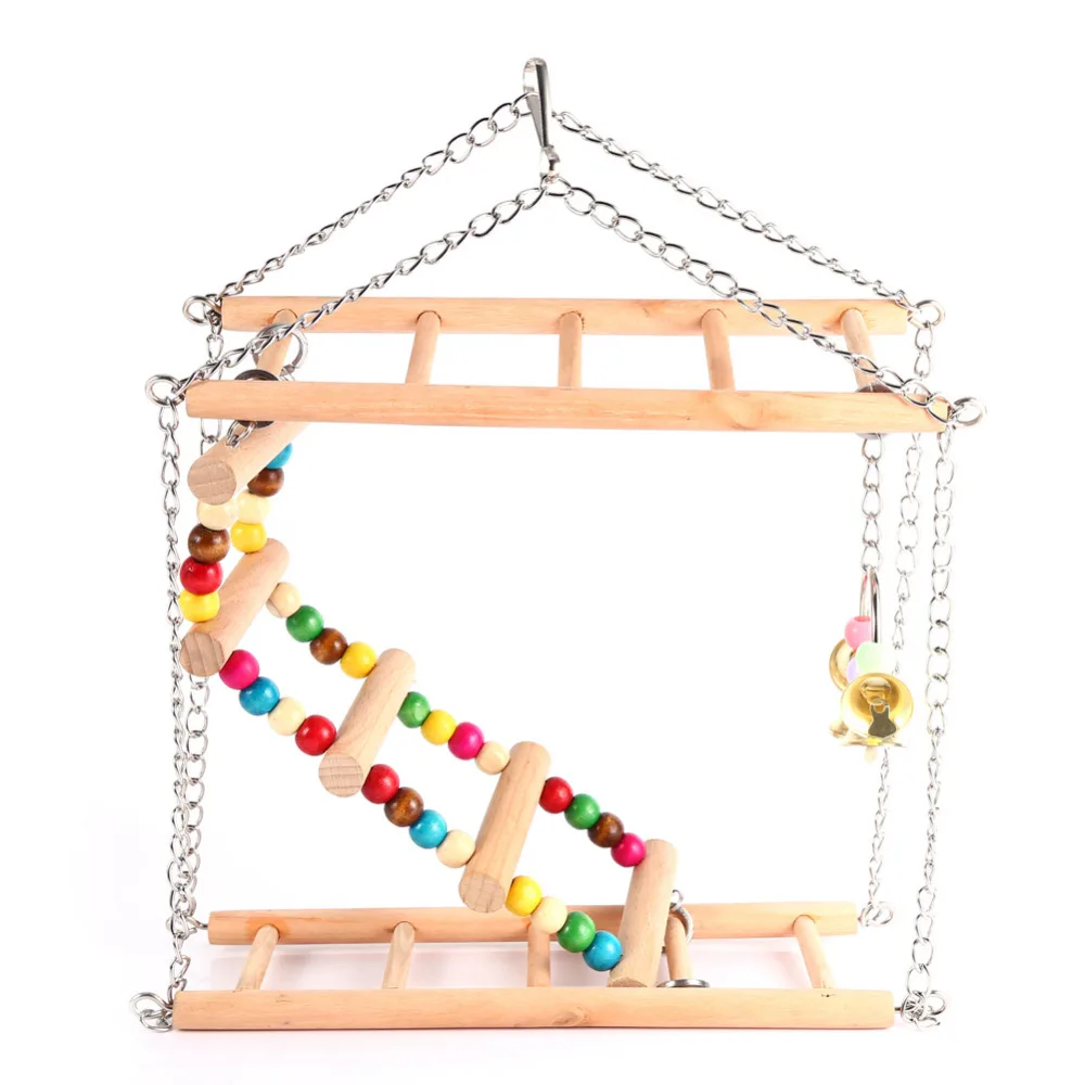 Bird Toy Rainbow Parrots Hanging Ladder Bird Swing Exercise Climbing Toy Wooden Parrot Macaw Stairs