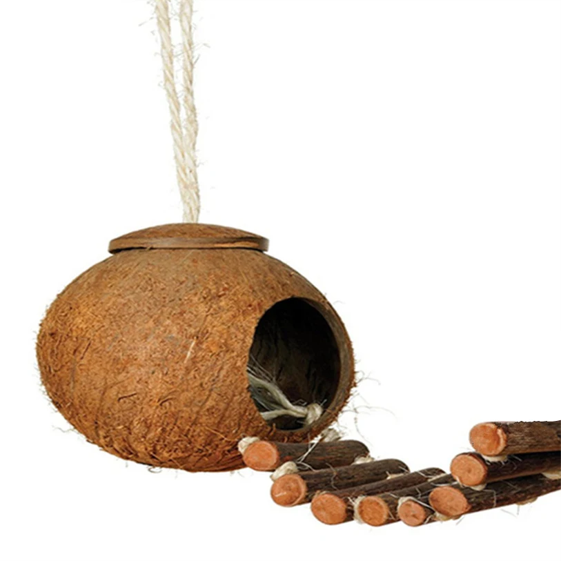 Bird Parrot Hanging Hammock Coconutshell Bird Nest Swing Toy Budgie Cockatiel Bed Cave Cage Bridge Hut House Pet Chew Toy noDC25