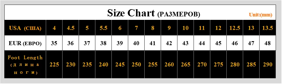 The shoes’ size maybe not fit the standard of your country, please measure your foot length,and choose the right shoes’ size! “EUR” Size is only for reference, only trust the foot length!