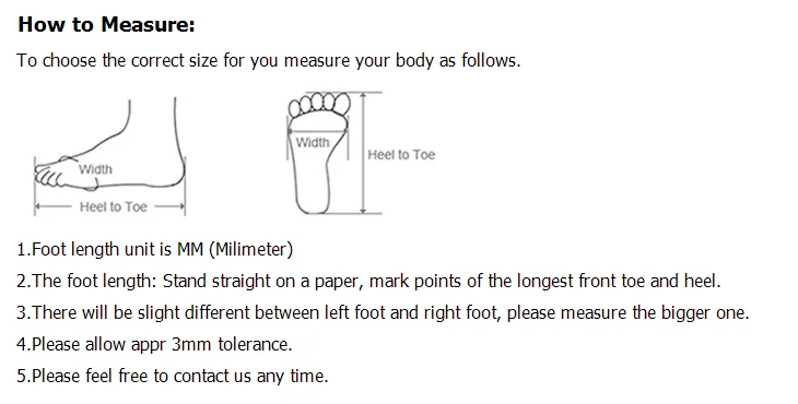 The shoes’ size maybe not fit the standard of your country, please measure your foot length,and choose the right shoes’ size! “EUR” Size is only for reference, only trust the foot length!