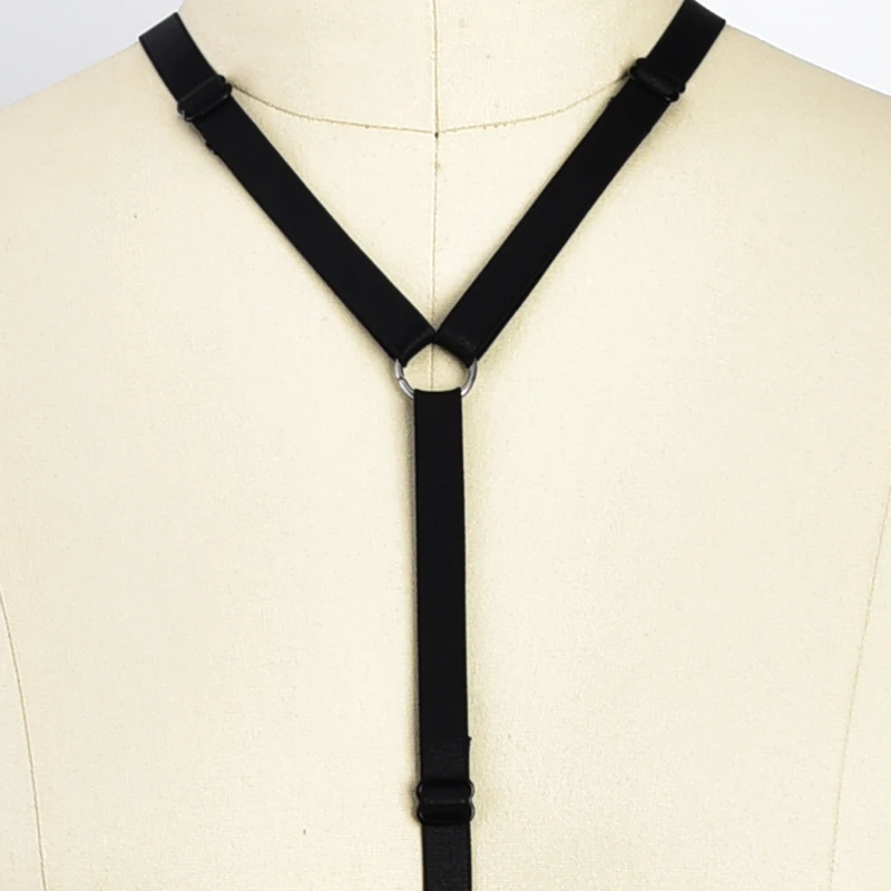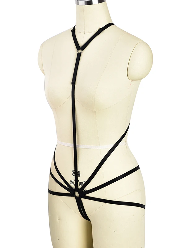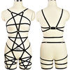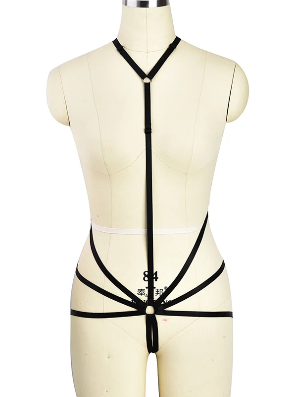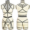 Black Bondage Elastic Body Harness Bra G-String Belt Goth Crop Top Strappy Rave Festival Body Cage Lingerie Set For Women