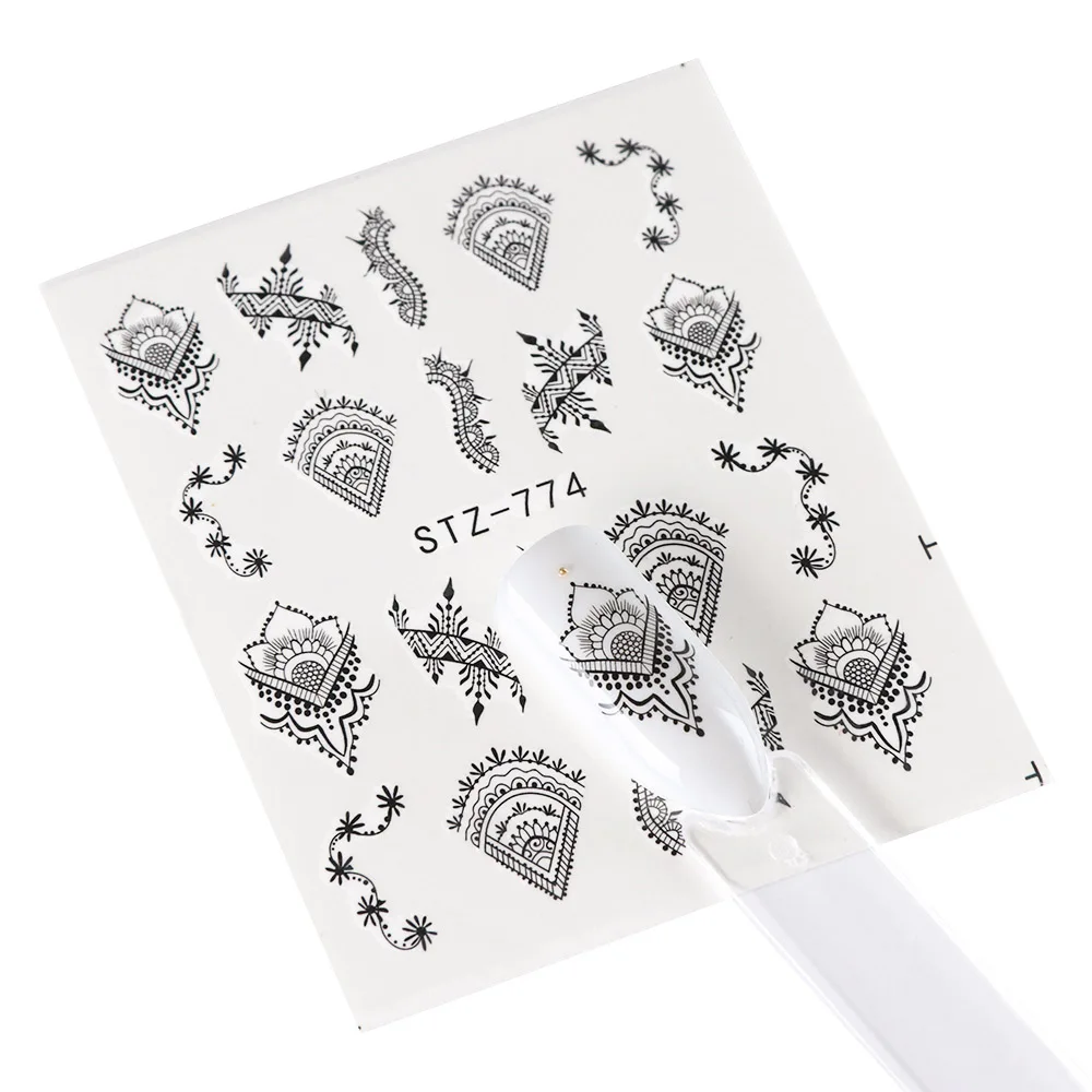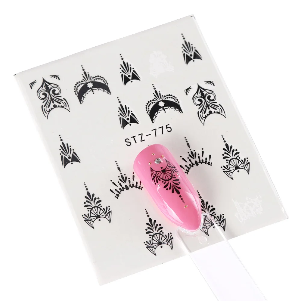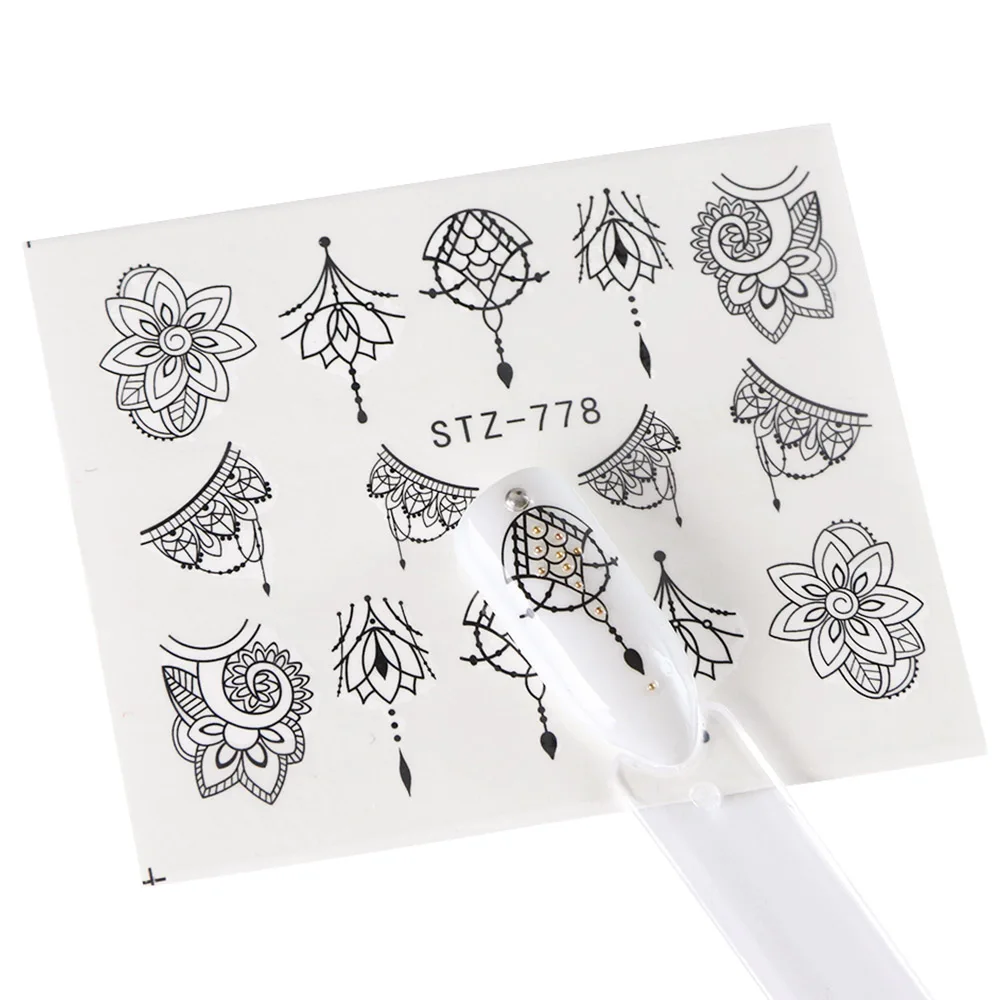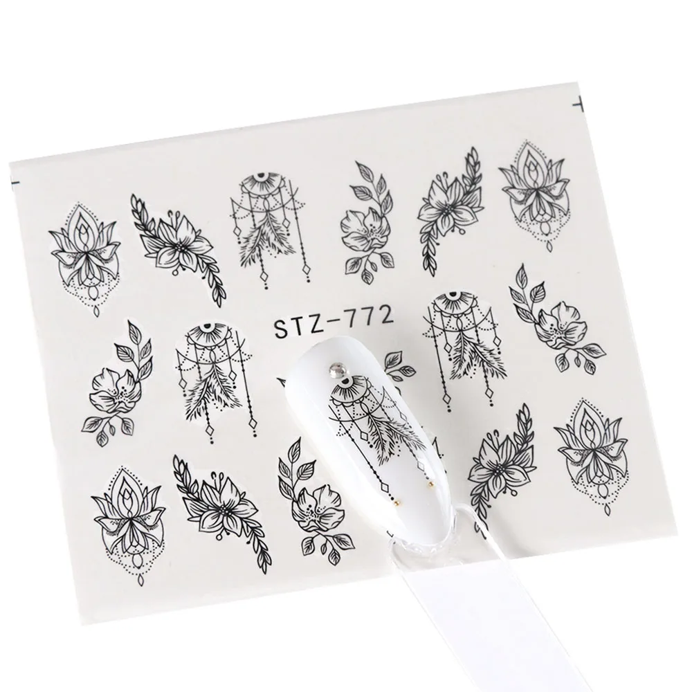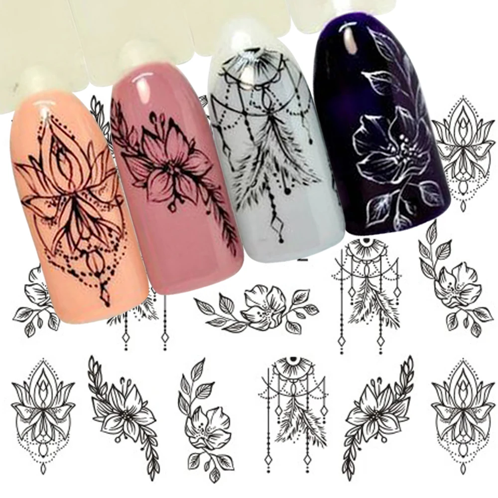 Black Flower Nail Sticker Water Transfer Classical Design Necklace Dream Catcher Beauty Decoration Slider Manicure SASTZ766-778