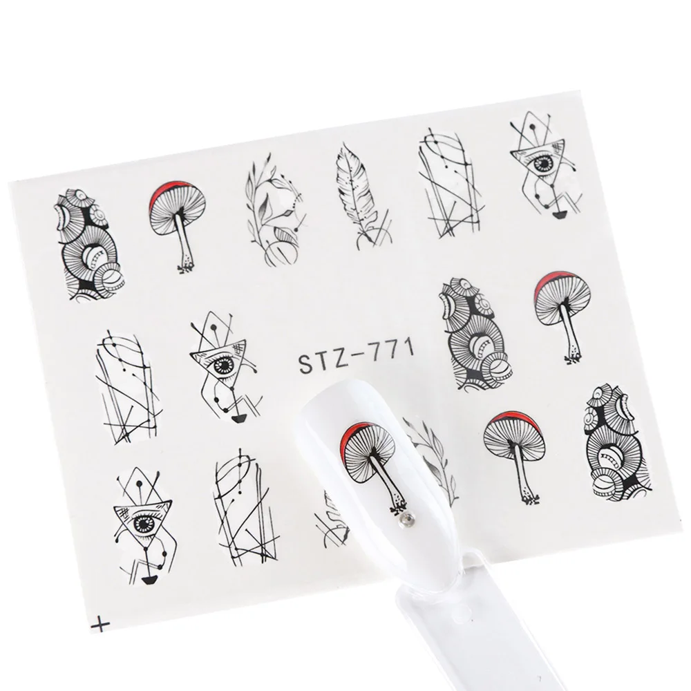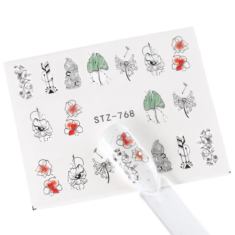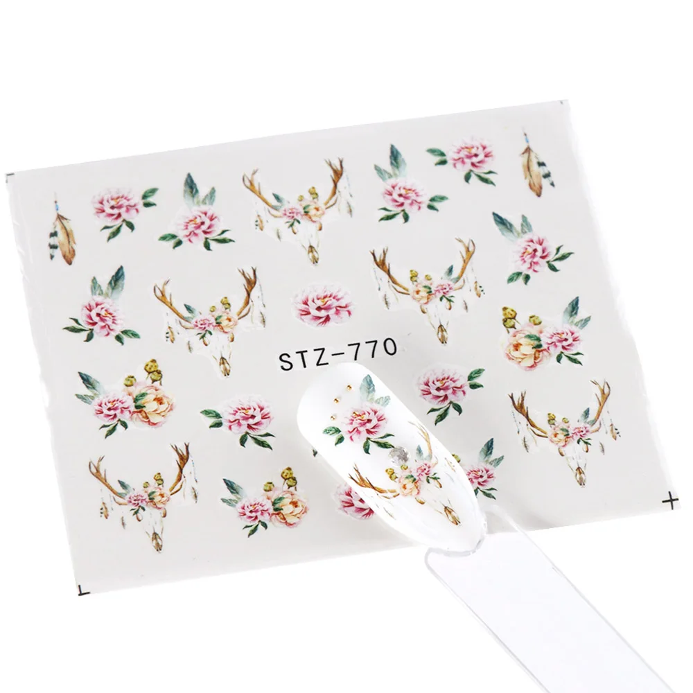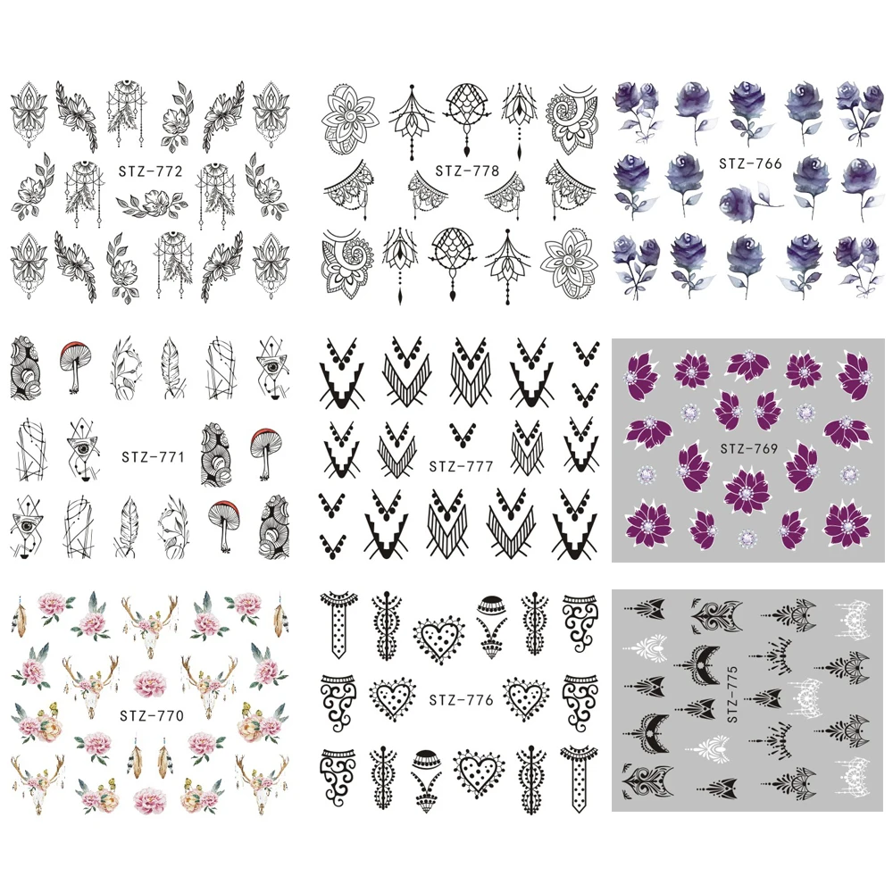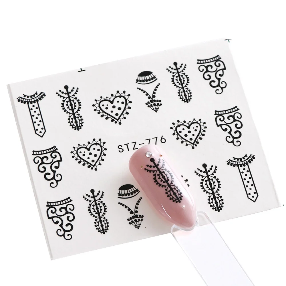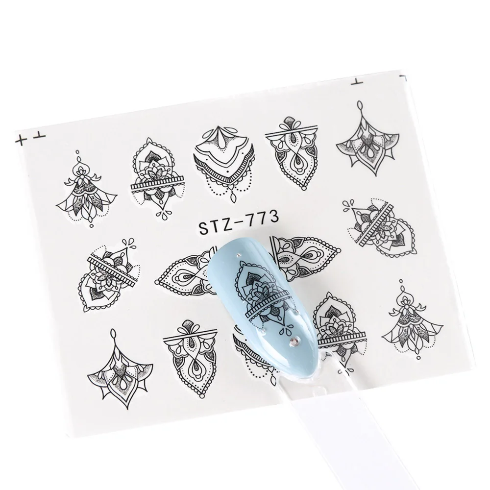 Black Flower Nail Sticker Water Transfer Classical Design Necklace Dream Catcher Beauty Decoration Slider Manicure SASTZ766-778