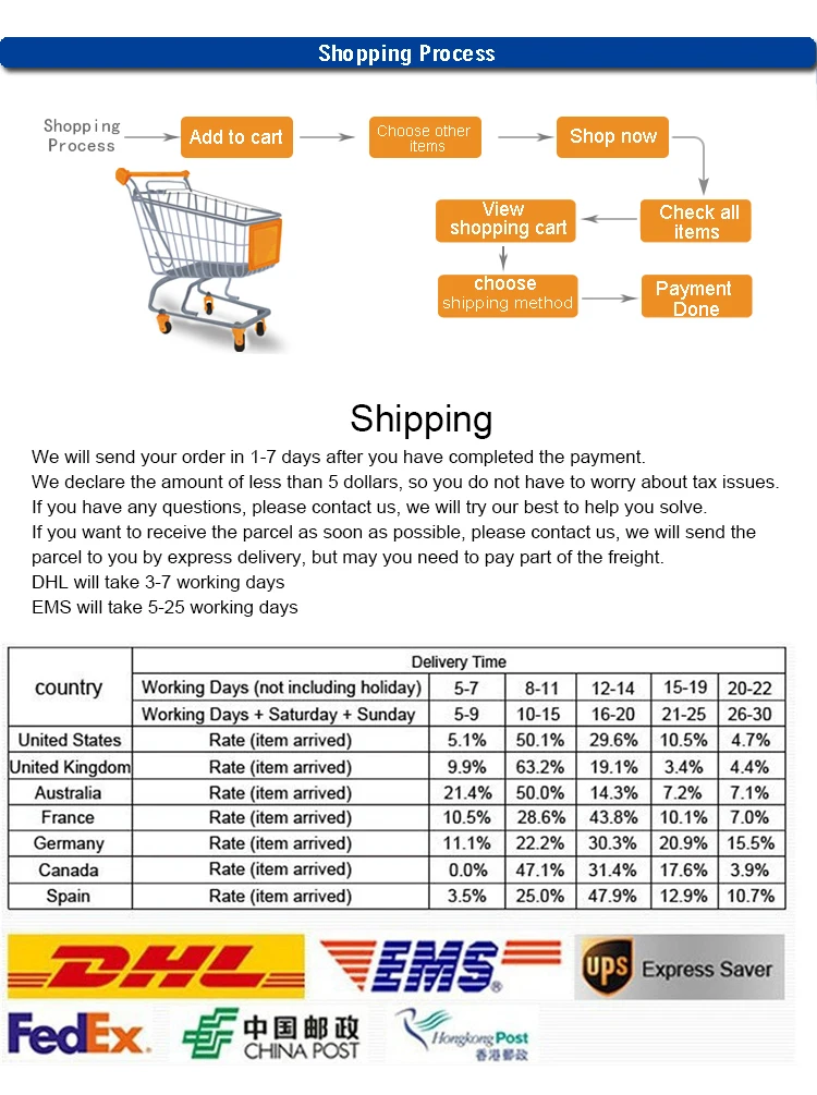 • If you did not receive the product within the guaranteed time( 45 days not including 2-5 day processing) you can request a refund or a reshipment.