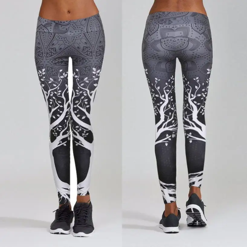 Black NEW Women Printed Sports Yoga Pants Workout Gym Elastic Waist Athletic Pants Cotton Sports Pencil Pants JLY0825