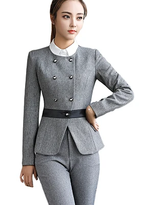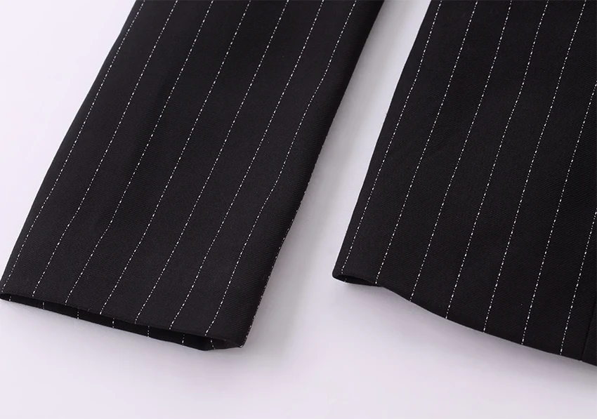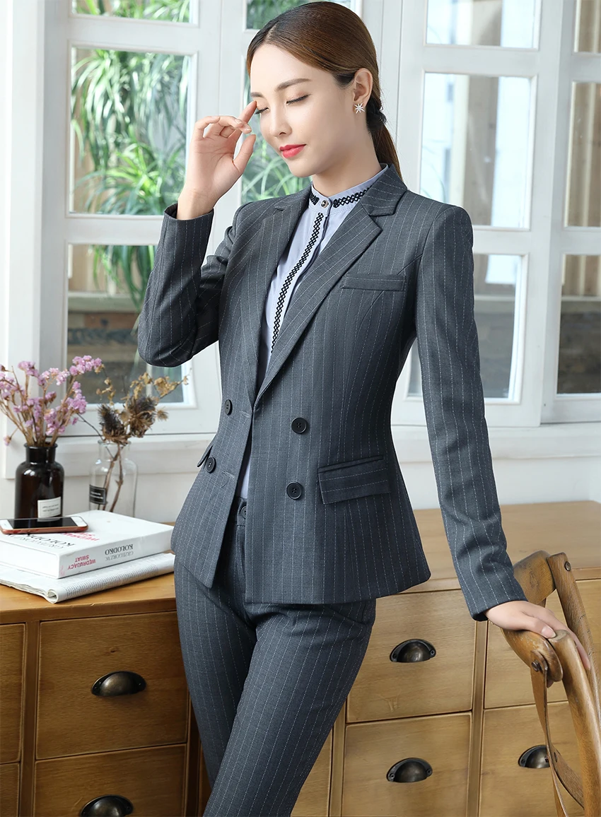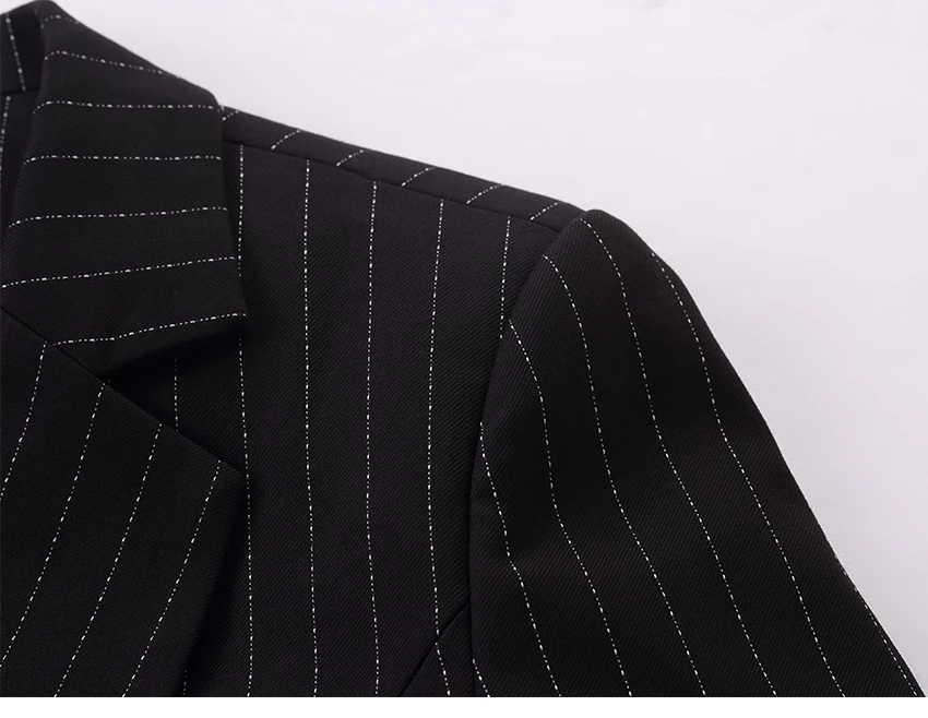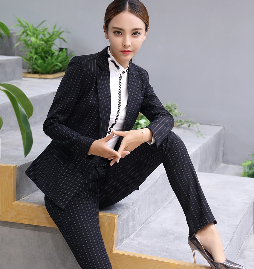 Black Soft Striped Winter Pant Suits 2 Pieces Set Office Uniform Design Career Business Style Women Work Wear Size S-4XL