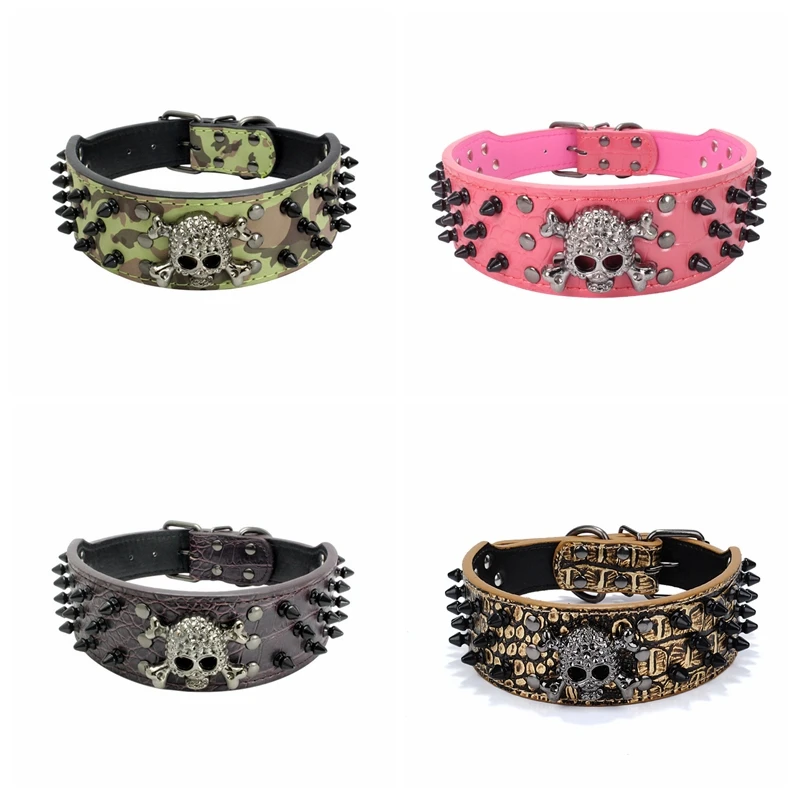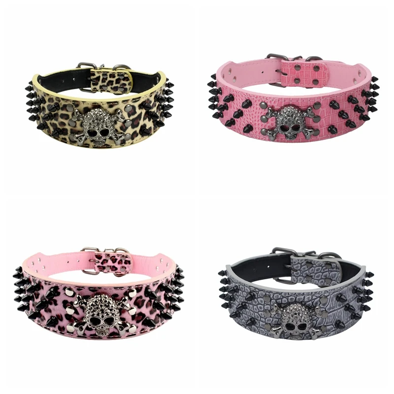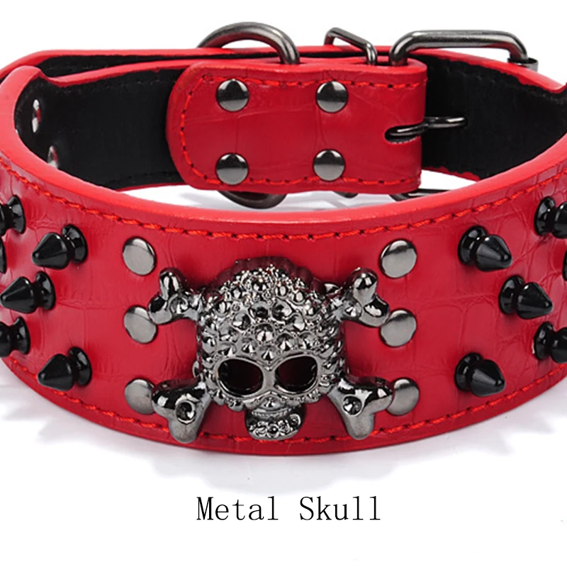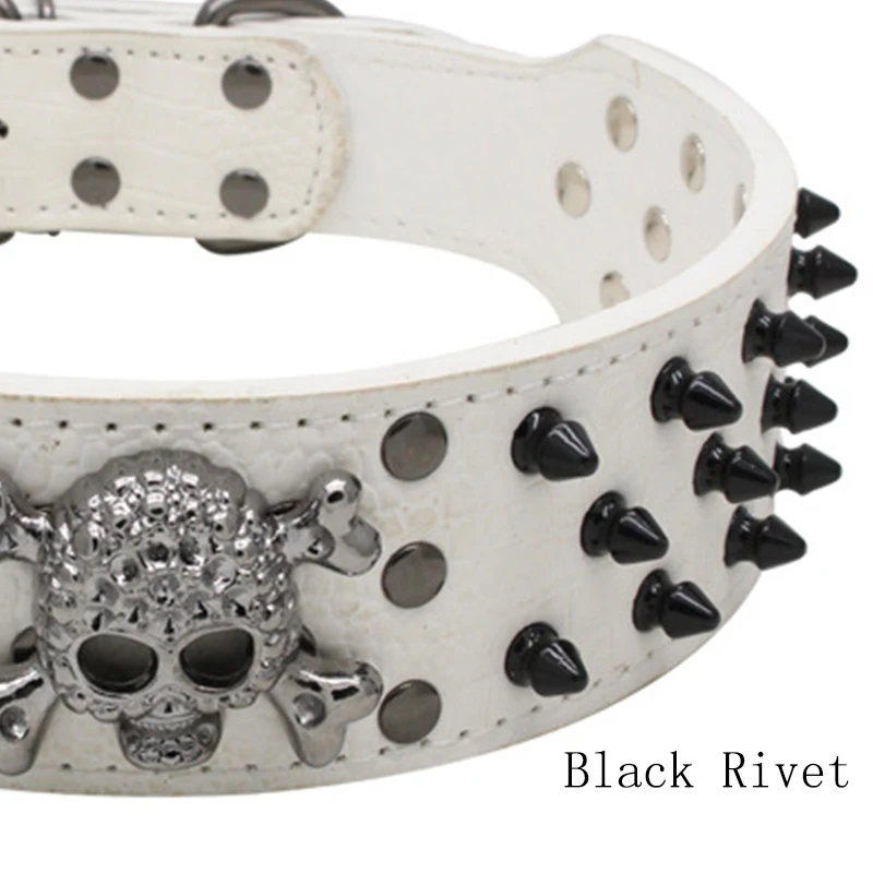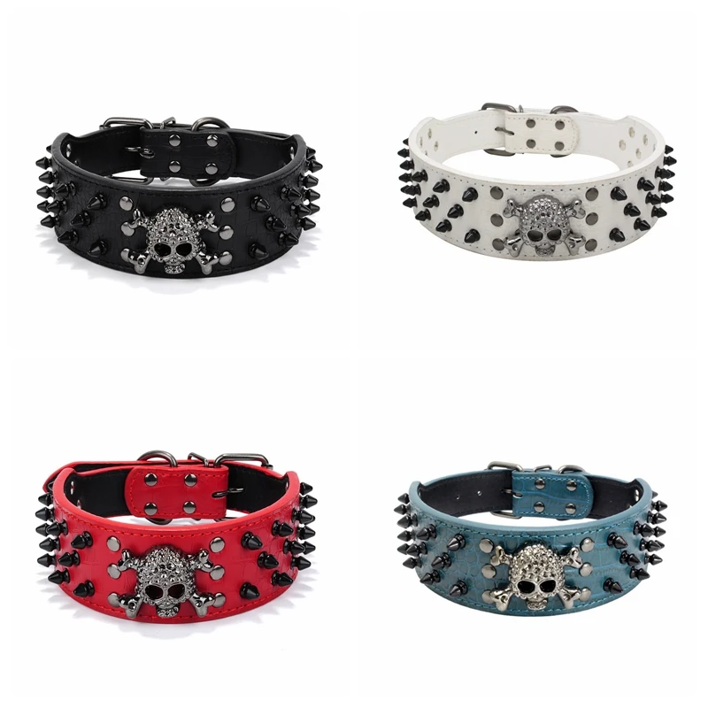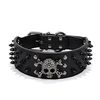 Black Spiked Studded Skull PU Leather Dog Collars Pitbull Bulldog Big Dog Adjustable Punk Pet Collar For Small Medium Large Dogs