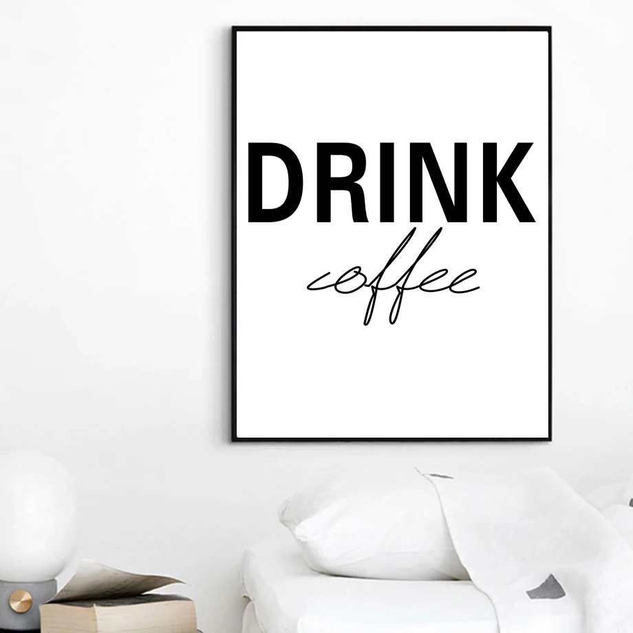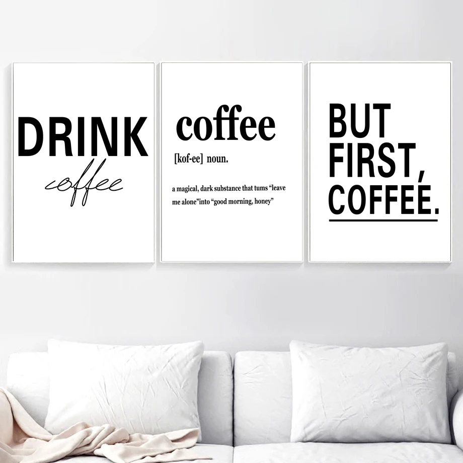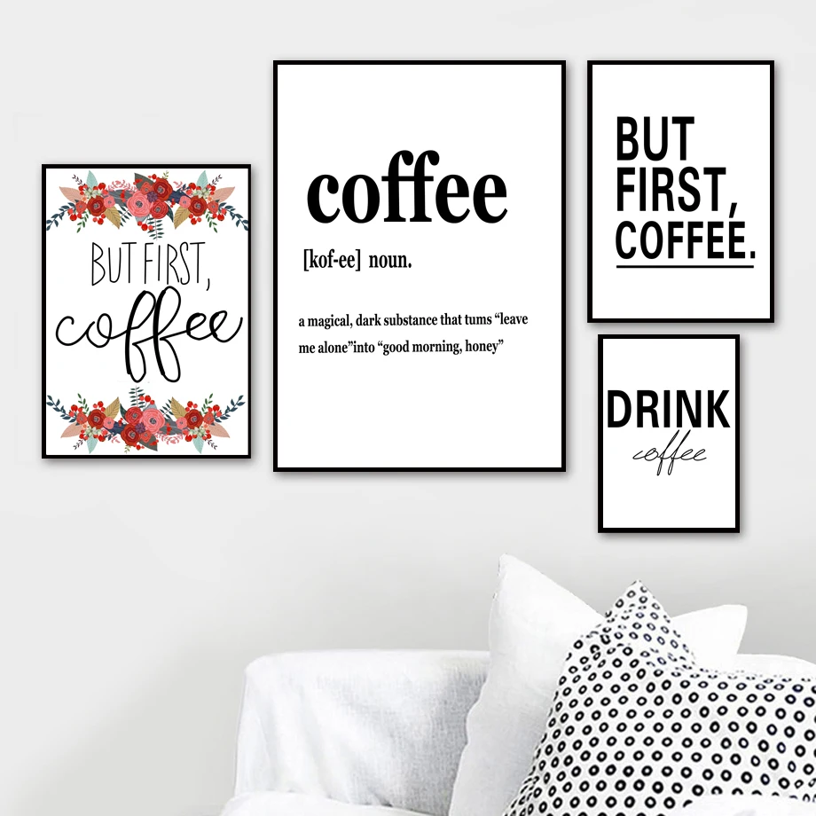 Black White Letter But First Coffee Sign Wall Art Canvas Painting Nordic Posters And Prints Wall Pictures For Living Room Decor
