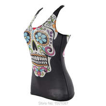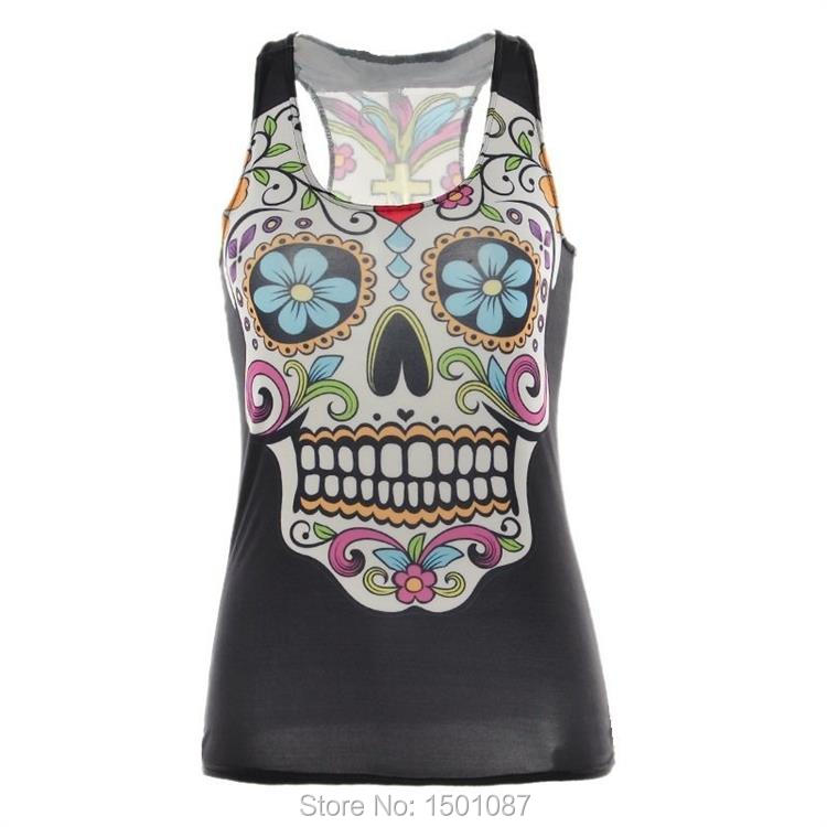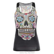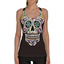 Black Women Sports Tank Tops Sexy Sleeveless T Shirt Clothes Elastic Yoga Running Vests Camisole Flower Skull Digital Print