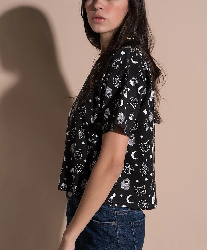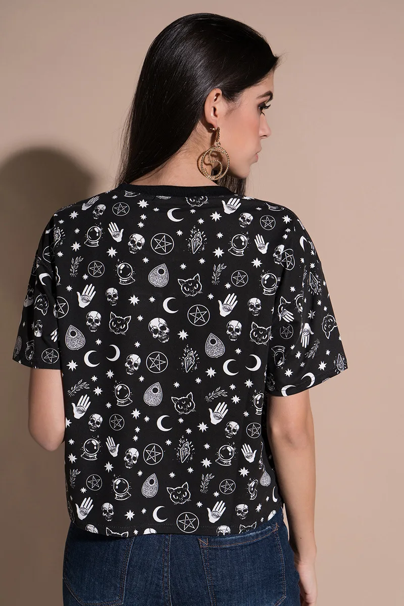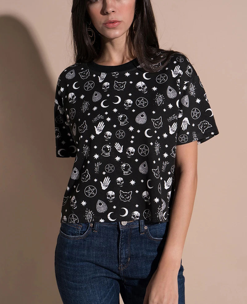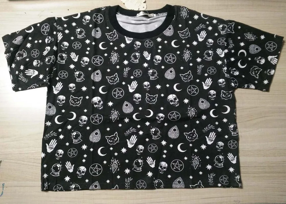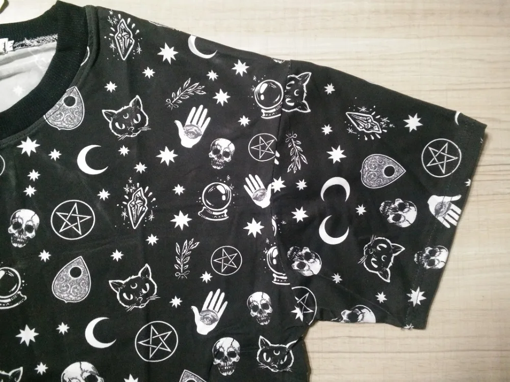 Blackest Gothic Tee Moon Witchcraft Cat Printed Harajuku Short T-Shirt Women Tops Loose Summer Skull T Shirt For Goth Girl