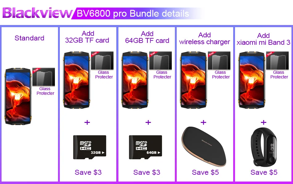 Standard package Add 32GB TF card Add 64GB TF card Add wireless charger Add band 3