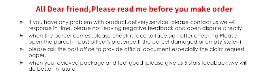 • If you did not receive the product within the guaranteed time( 45 days not including 2-5 day processing) you can request a refund or a reshipment.