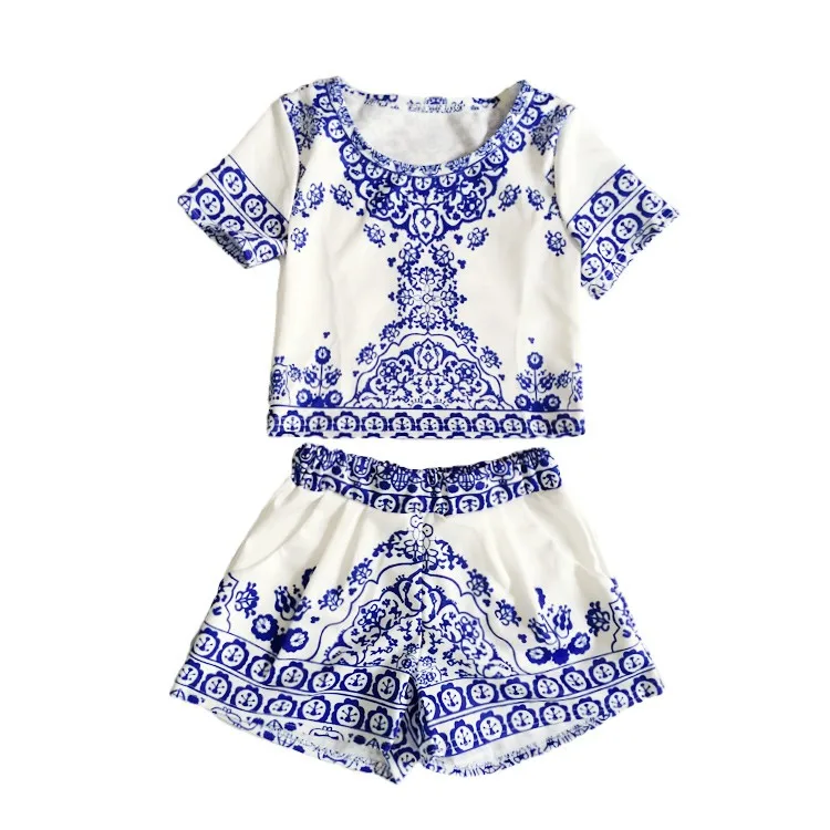 summer style porcelain print two piece jumpsuit romper This stylish two-piece set will make you look chic and fashionable effortlessly. It is a good choice to wear on many occasions. Come and have a try!