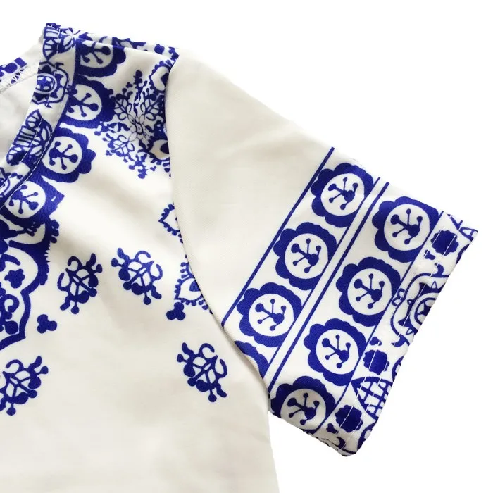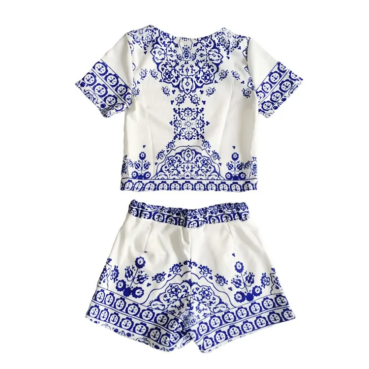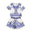 summer style porcelain print two piece jumpsuit romper This stylish two-piece set will make you look chic and fashionable effortlessly. It is a good choice to wear on many occasions. Come and have a try!