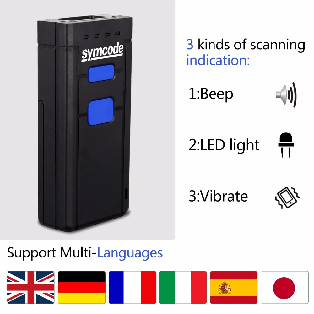Beep,LED light and Vibrate scanning indication