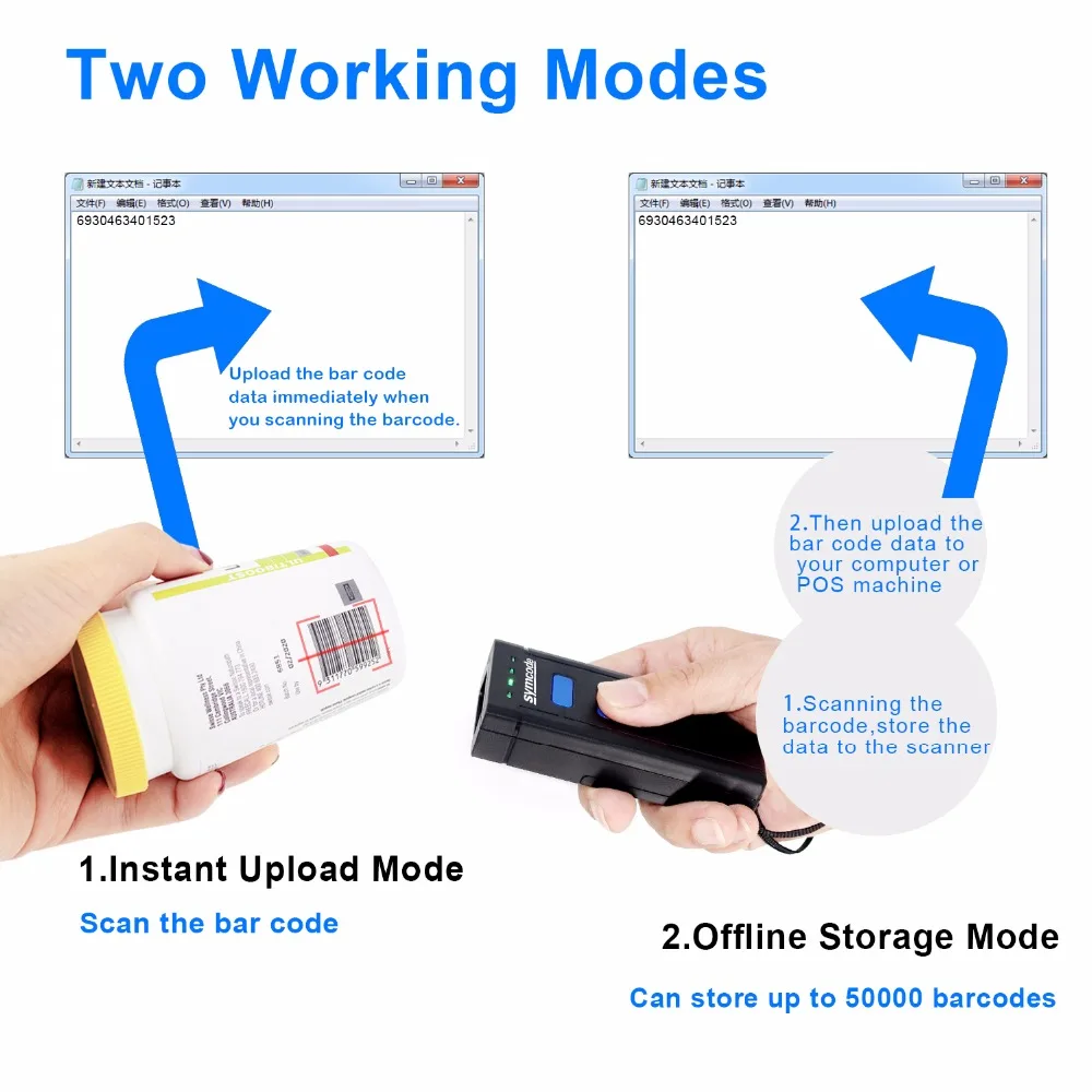 2:Three scanning mode:Trigger mode,Continuous mode and Auto-sense mode.