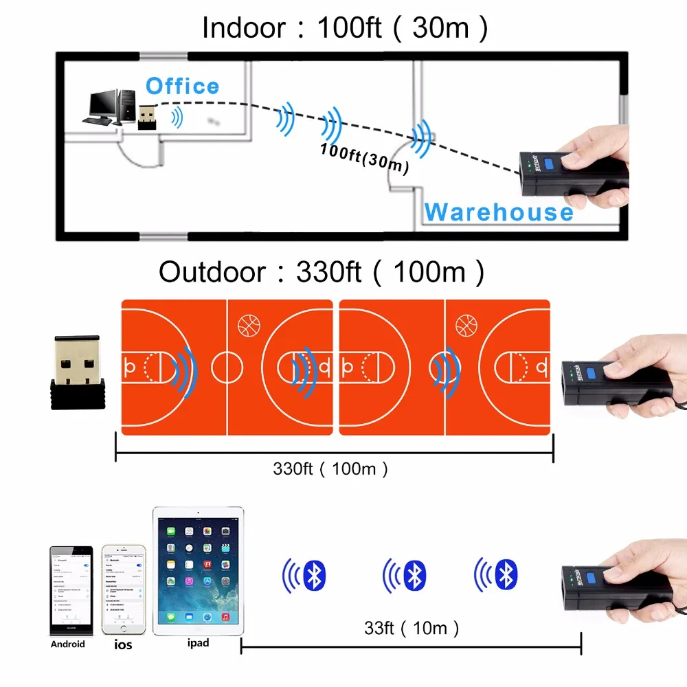 2.4GHz Transfer Distance:30-50meters(Indoor);100meters(Outdoor)