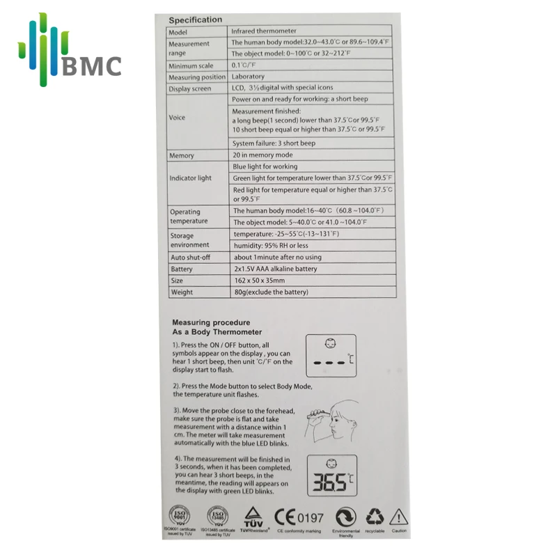BMC Digital Infrared Forehead Thermometer for Baby Adult Professional LCD Body Fever Temperature Measurement Handhold Product