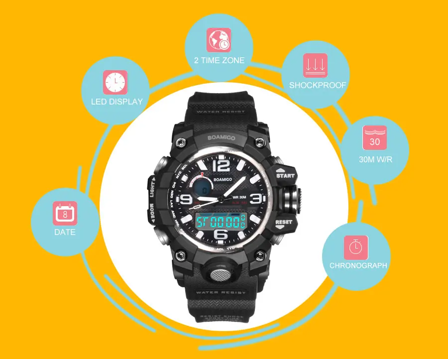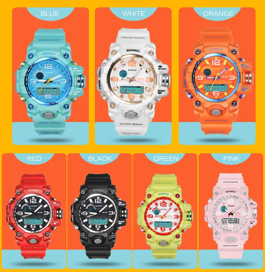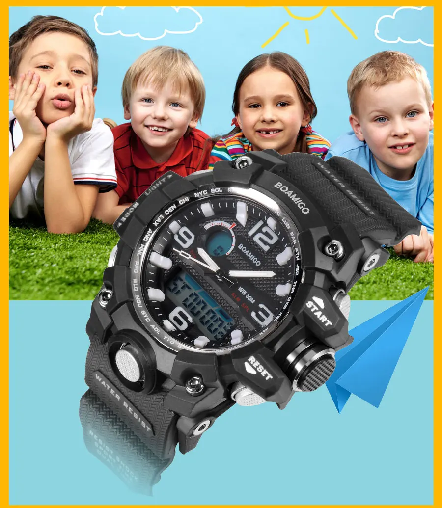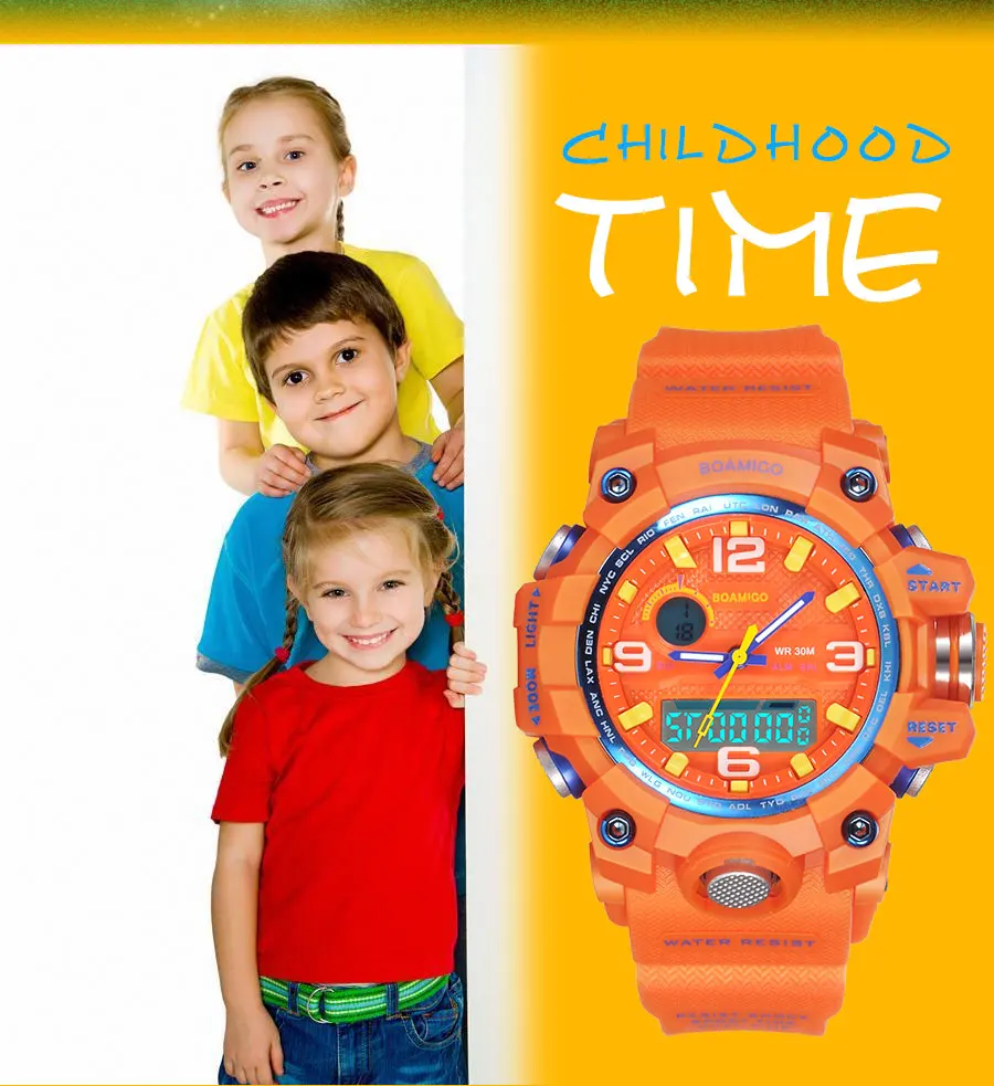 BOAMIGO Brand Children Sports Watches Multifunction Dual Display Watch child Gift Watch Fashion Digital Wristwatches Waterproof